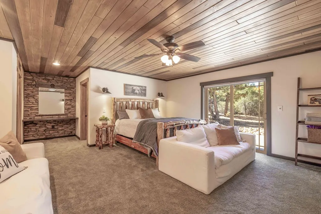 This breathtaking custom Craftsman home is tucked away on a quiet cul-de-sac in highly sought-after Meadowbrook Estates, offering privacy, serenity & timeless mountain charm. Built in 2014, this home showcases exceptional craftsmanship throughout from the warm wood ceilings and detailed wood paneling to the open-concept layout that perfectly blends rustic elegance with modern comfort. The gourmet kitchen is a chefs delight, featuring custom counters, a 6-burner range, spacious pantry, with high-end finishes throughout. The living area is centered around a stunning stone fireplace, perfect for cozy gatherings, while large windows frame the natural beauty that surrounds the home. With four spacious bedrooms, including two massive primary suites, each offering walk-in closets and luxurious private bathrooms, this home is ideal for multi-generational living or hosting guests. Step outside to enjoy the peaceful natural landscaping, thoughtfully designed for beauty and low maintenance. Recognized as the 2018 selectee for the Big Bear Valley Xeriscape Water Wise Garden Tour, this property harmonizes perfectly with its mountain setting. Close to the National Forest & only minutes from Big Bear Lake, ski slopes & the Village, this extraordinary home offers the best of mountain living - privacy, elegance, and connection to nature all in one exceptional package. This is the mountain dream home youve been waiting for.