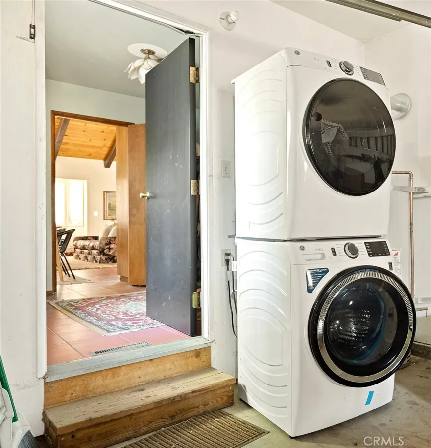 Welcome to the most charming chalet-style dream cabin in Pinewood Estates, Big Bear. This is an incredible opportunity to own the most stylish Big Bear escape, thoughtfully renovated and curated by a Los Angeles interior designer and antique dealer. This 3-bedroom, 2-bath home blends timeless A-frame charm with modern comfort, creating a truly one-of-a-kind retreat. Step inside to soaring A-frame T&G ceilings, a cozy fireplace with wood stove, and a sunny bay window perfect for reading. The beautifully updated kitchen features Cambria quartz countertops with a waterfall peninsula, designer green Zellige backsplash, touchless faucet, and a double-bowl sinkall paired with original vintage cabinetry that adds warmth and character. The loft-style primary suite offers a peaceful retreat with ensuite bath, dual closets, and a large A-frame window framing treetop views. Two downstairs bedrooms include ample storage and vintage dressers, while updated bathrooms showcase modern style with designer finishes. Outdoor living shines with a front deck, fully-fenced backyard, dual-access gates, three producing fruit trees (apple, plum, peach), and a Dad Pad converted shed with electric, insulation, and Milgard windowsperfect for a studio, office or game room for the kids. A looped front driveway plus extended driveway and 2-car garage provide ample parking for cars, RV, or boats. Every detail of this home has been thoughtfully upgraded, including: brand new asphalt shingle roof (Malarkey), fresh exterior & interior paint, new flooring throughout, new front & back deck railings and steps,