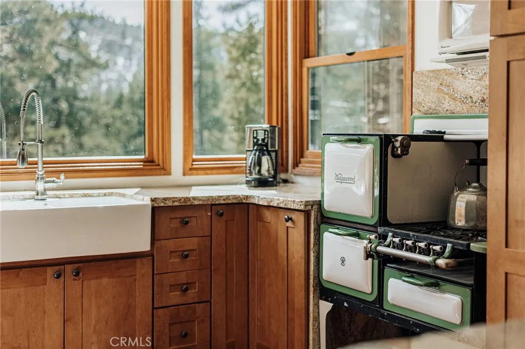 Perched above Big Bear Lake with stunning lake and mountain views, this fully furnished, ready-to-enjoy retreat in the National Forest offers a spacious private parking area and year-round access. If youre looking for your own private getaway for your family and/or have friends or family that you would like to partner with, and you dont want the responsibility/hassle of vacation renting out your treasure, keep reading! This Forestry Cabin does not allow short-term rentals, offering a serene escape surrounded by trees and the lake (at a fraction of the price of comparable homes this close to the lake). The lake is directly across the street, offering instant access for kayaking, fishing, and soaking in the beauty of the water and surrounding mountains. Offering peace of mind, the new roof was installed November 2024! Current owners pay an affordable $2,720 annually for CA Fair Plan insurance. This 4-bedroom, 3-bath home comfortably sleeps 9, making it perfect for families and groups. Originally built in 1920 and completely renovated down to the studs in 2013, it seamlessly blends modern conveniences with classic mountain charm. The spacious living area boasts vaulted ceilings, a striking stone fireplace, and expansive windows framing breathtaking lake and forest views. The open kitchen features granite countertops, modern cabinetry, and a fully functional vintage Wedgewood stove, adding a unique touch to your cooking experience. Private guest quarters offer added flexibility for hosting, while a second family gathering space provides extra room to relax, entertain, or take i