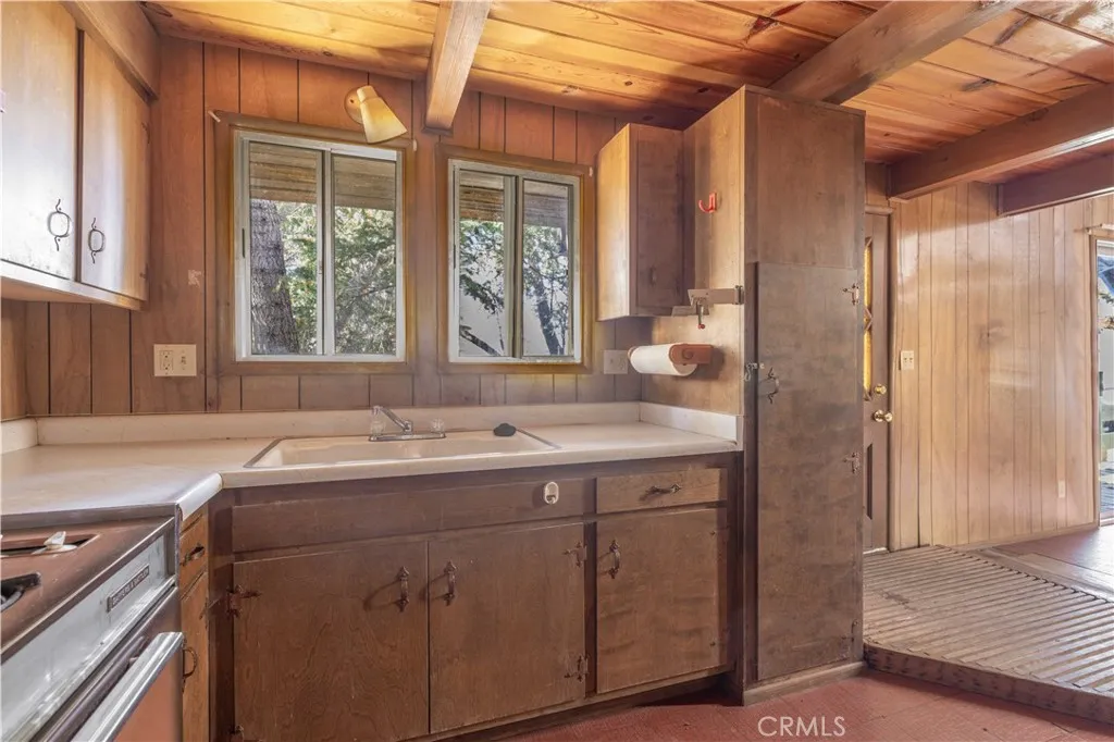 Nestled just steps away from Bear Mountain Ski Resort, this charming 2-bedroom, 1-bath A-frame cabin offers the ultimate mountain getaway. Featuring vaulted tongue-and-groove ceilings and an open-concept kitchen, living, and dining area, this cozy retreat is brimming with potential. The expansive lot provides ample space to add on or enhance the property, making it an excellent investment opportunity for rental income or personal use. With a few upgrades, this mountain gem could shine even brighter, perfectly blending comfort and potential in one of Big Bear's most sought-after locations.
