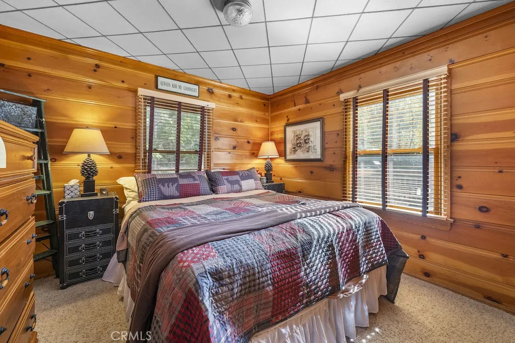 Introducing a charming 1,226 sq ft log cabin nestled in a serene, heavily treed area of Big Bear Lake! This inviting 3-bed, 2-bath retreat blends classic mountain character with rustic elegance. Warm Knotty Pine accents and a striking native rock fireplace create a cozy lodge feel, while the country-style kitchencomplete with a generous pantryoffers great functionality for everyday living or weekend escapes. A separate laundry area adds convenience. The well-designed layout includes a main-level bedroom, with additional bedrooms upstairs for added privacy. Step outside to a spacious back deck, perfect for relaxing among the pines or entertaining guests. Situated on a 9,000 sq ft lot, the property provides a peaceful, wooded setting, and the detached garage offers excellent storage for mountain toys! Located close to the lake and just a short drive to the Village, restaurants, shops, and ski resorts, this home is ideally positioned for year-round enjoyment. A wonderful opportunity to own an authentic Big Bear retreat in one of the areas most desirable neighborhoods.