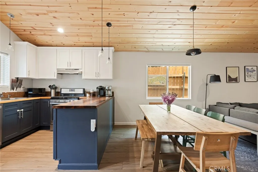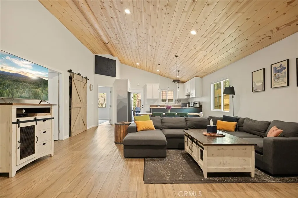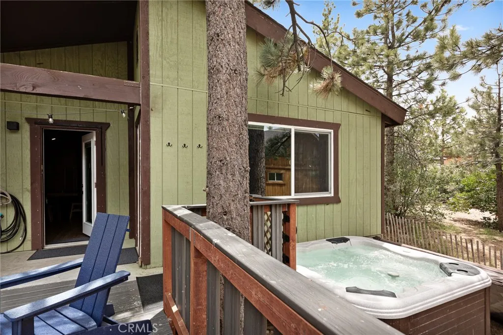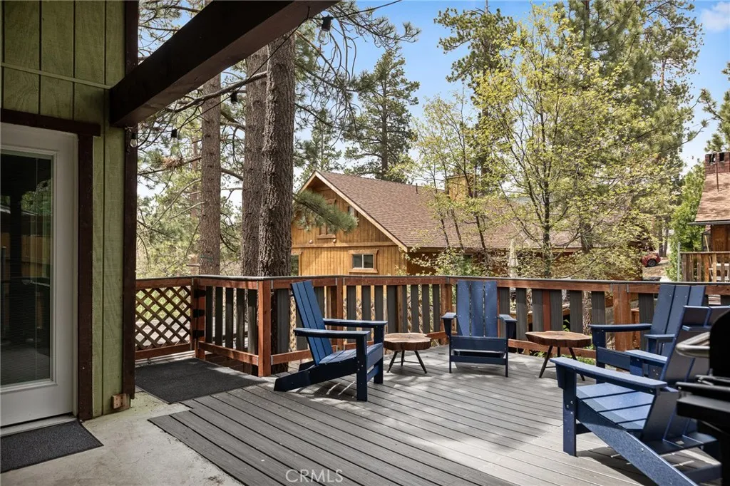 Welcome to your dreamy Big Bear Lake mountain retreat! This beautifully remodeled, single-story home combines rustic charm with modern upgrades, all in a prime, central location just moments from the lake, marinas, shopping, dining, skiing, and hiking trails. Walk inside and you're greeted by soaring T&G wood vaulted ceilings over an expansive, open-concept great room complete with a living room with a cozy wood stove fireplace, full-size dining area, laundry closet and fully-stocked kitchen, making it ideal for entertaining. Dual-pane windows throughout fill the space with natural light. This home features 3 generously sized bedrooms consisting of a primary suite, a fully-stocked kids room with bunk beds, and another large bedroom on the other end of the home, offering both privacy and comfort. Step outside to an expanded back deck, perfect for gatherings, and relax in the private spa just off the deckyour personal mountain sanctuary. Currently operating as a high-performing vacation rental, booked nearly every weekend, this home is ready for its next chapterwhether you're looking for a profitable investment or the perfect Big Bear getaway for you and your family. Don't miss this spectacular opportunity!