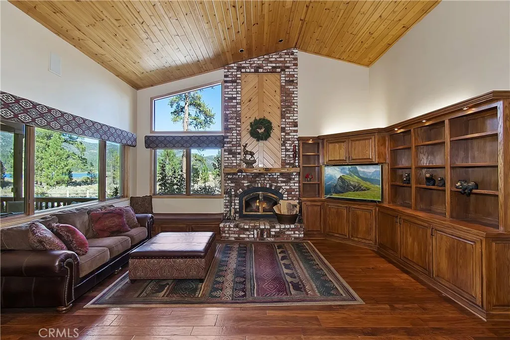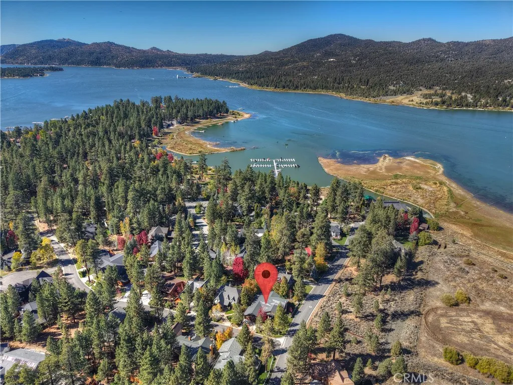 Luxury lakeside living in prestigious Eagle Point Estates ~ Located in one of Big Bears most desirable neighborhoods, this exceptional Ken Anderson built, custom home offers an unmatched blend of mountain charm and modern elegance ~ Perfectly positioned on a corner lot across from a protected eagle preserve, this property captures breathtaking lake views and a true sense of peace and privacy ~ Enjoy lake access and your own assigned dock, just a two-minute stroll from the front door ~ ideal for boating, paddle boarding, or evening sunset cruises ~ This beautiful single-story residence features an open floor plan with four spacious bedrooms and three and a half baths, designed for effortless comfort and entertaining ~ the living room has a clear view of the lake with large windows to allow the natural light to shine in while the grand fireplace adds warmth and mountain character ~ The gourmet kitchen opens seamlessly to the living and dining areas, perfect for gatherings with family and friends ~ Step outside to an expansive deck overlooking Big Bear Lake, the ideal spot to sip morning coffee while watching eagles soar ~ Every detail of this home reflects thoughtful craftsmanship, timeless design, and a connection to nature ~ Centrally located near Snow Summit Ski Resort, The Village, shopping, dining, and year-round activities ~ This property delivers the ultimate Big Bear lifestyle, here luxury, nature, and adventure meet ~ Dont miss this rare opportunity to own a signature home in Eagle Point Estates, your very own mountain retreat with stunning views, and timeless appeal