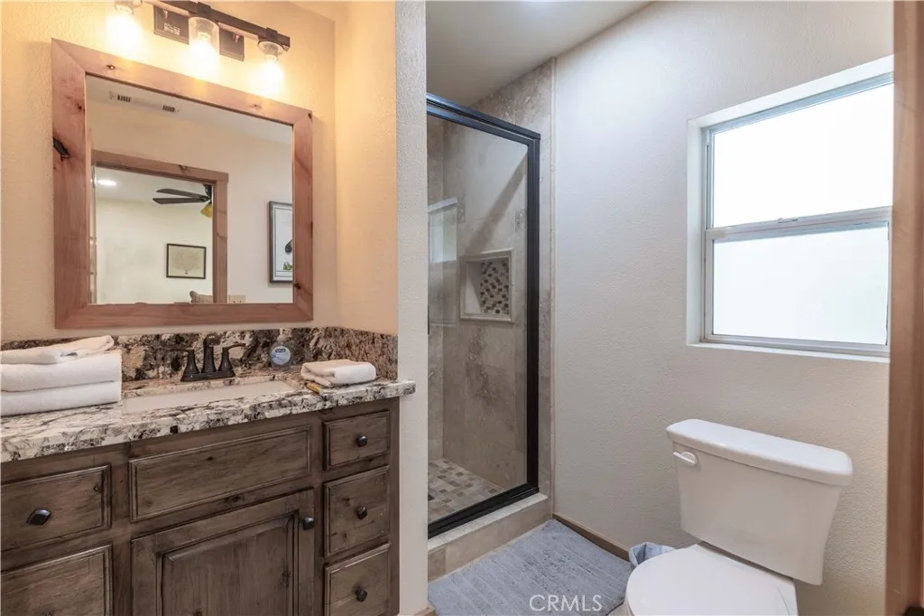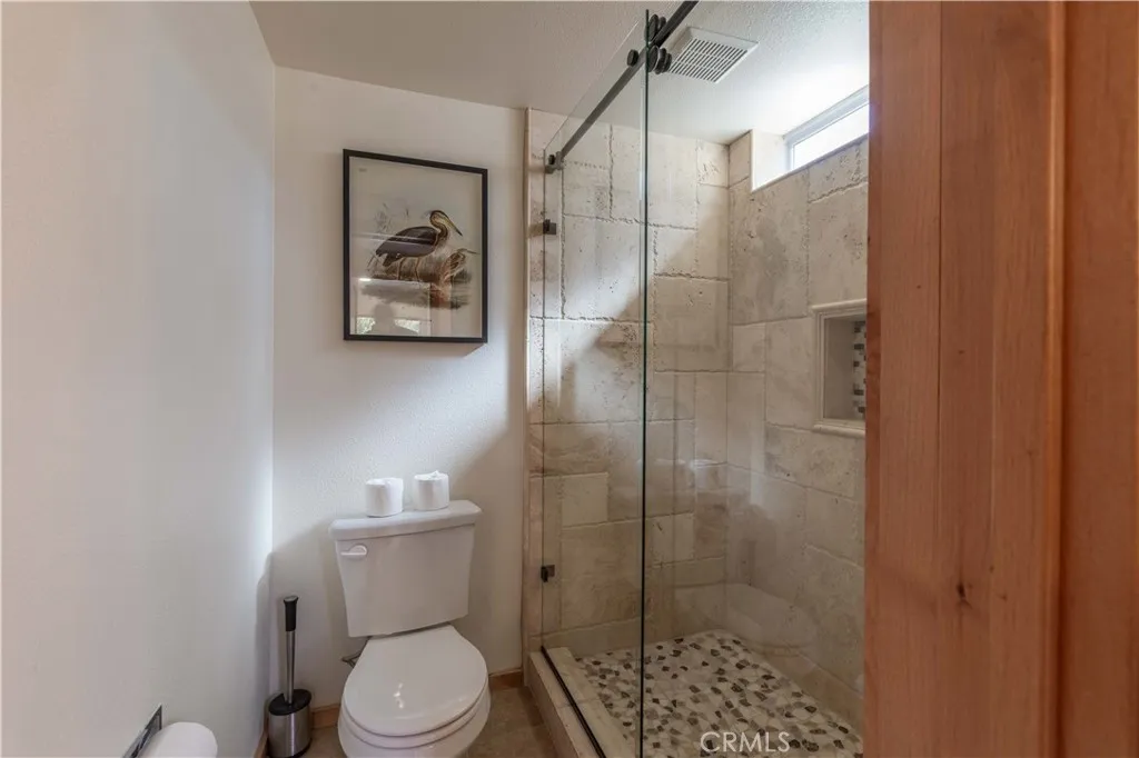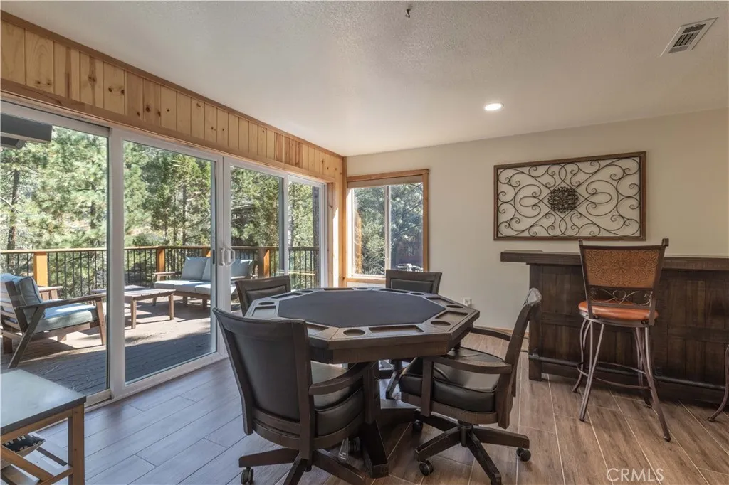 HOME BACKS TO A PERMANENT OPEN SPACE EASEMENT!! TRANQUILITY, PRIVACY & LUXURIOUS LOCATION is probably the best way to describe this home!! Home is located in one of the best neighborhoods in the whole Big Bear Valley- EAGLE MOUNTAIN ESTATES!!! Home features 5 bedrooms ( each bedroom has its own bathroom ) and 8 bathrooms which allows many possibilities for large crowds for their convenience and enjoyment. Tile flooring throughout for more durability and resistance. Log accents throughout make this home look and feel like a true cabin in the woods!! Enjoy your cup of coffee from the deck enjoying the very nice scenery with the utmost peace and quiet. This home is one of a kind, don't wait too long, it won't last!!!!