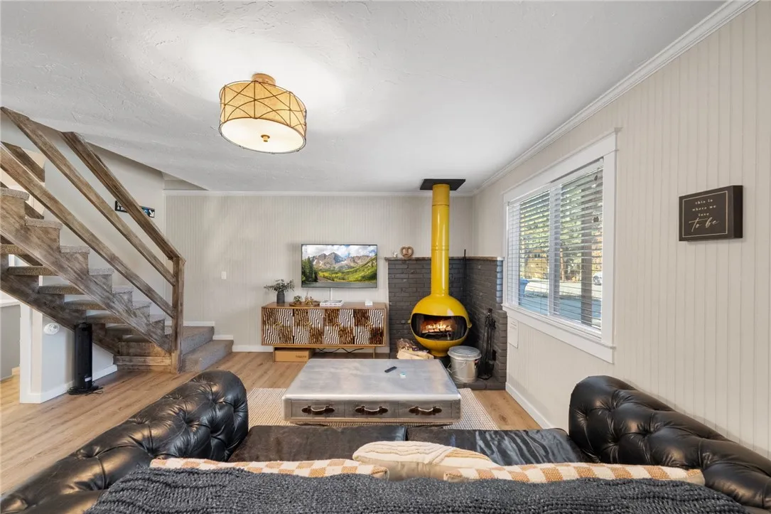 Charming Moonridge Mountain Retreat with Hot Tub, Outdoor Kitchen & Modern Upgrades!! Discover your perfect Big Bear getaway in this beautifully renovated Moonridge cabin, ideally located near both Bear Mountain and Snow Summit ski resorts. This mountain retreat blends rustic charm with contemporary comfort, creating the ideal escape for relaxation or adventure. Step inside to find a fully remodeled chefs kitchen featuring quartz countertops, subway tile backsplash, shaker cabinetry, and premium Whirlpool appliances. The open-concept living area invites cozy gatherings around the fireplace or casual meals at the breakfast bar. After a day on the slopes or trails, unwind in your private hot tub under the stars or enjoy dinner from the built-in BBQ in the fully fenced backyard. Entertain guests around the new outdoor gas firepit, or take in fresh mountain air from the spacious balcony. On the back patio you will also find a spacious shed for storage to hold all of your favorite wintertime hobby gear. Every detail has been thoughtfully curated for year-round comfort and convenience, including energy-efficient upgrades and an eco-friendly rain barrel irrigation system. Whether youre searching for a personal mountain retreat or a proven short-term rental investment, this home is ready for youcomplete with an established rental history and professional property management in place. Your Big Bear adventure starts herewhere modern luxury meets mountain living.