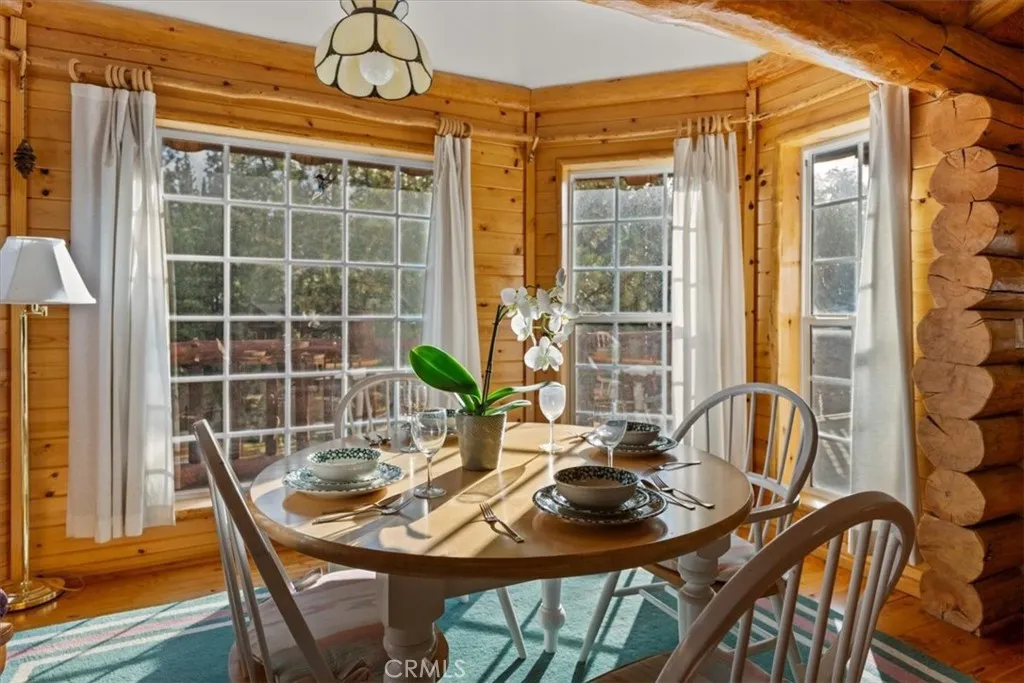 Welcome to this warm and inviting full-log home in Eagle Mountain Estates, located in the desirable Fox Farm area of Big Bear Lake. This single-level cabin features 3 bedrooms, 2 bathrooms, a 2-car attached garage, and underground utilities. Recent upgrades include a new roof, tankless water heater, new furnace, and a new hot tuball ready for comfortable mountain living. Inside, youll enjoy an open floor plan with natural wood flooring, vaulted T&G ceilings, and a dining area that looks out over the trees and mountain views. Theres also a separate laundry room with a sink for added convenience. Step outside to an almost wrap-around Trex deck, plus an additional back deck perfect for entertaining. Under the home, youll find a clean, easily accessible build-up area for extra storage. The home comes furnished and even includes a snow blower, making it truly move-in-ready. A great option as a second home or rental in the mountains.