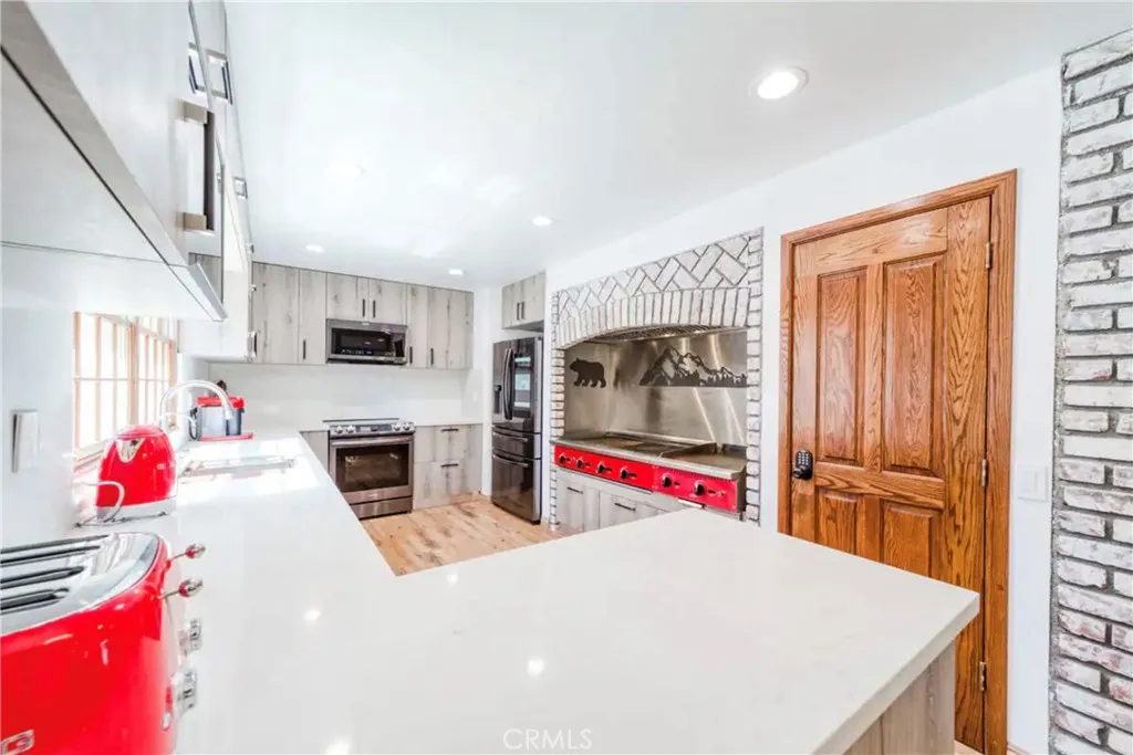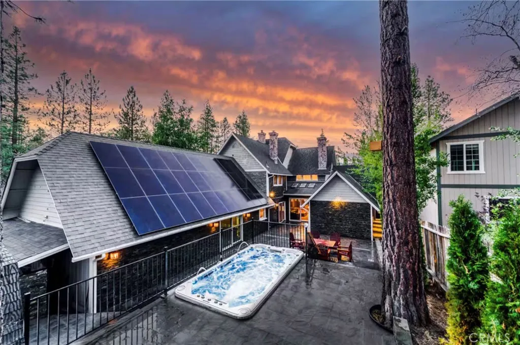 Experience luxury mountain living in this stunning, fully remodeled smart home located in the highly sought-after Fox Farm neighborhood. Originally built in 1986 and extensively updated in 2021, this Victorian-style residence offers 6 bedrooms and 5.5 baths across 5065 sqft of beautifully appointed living space. Step into a warm and inviting living room with a wood-burning fireplace, or entertain in the elegant formal dining area. The custom-designed kitchen is a chefs dream, featuring smart Samsung appliances, imported Italian tile, oak hardwood floors, and an impressive 7-ft grill and griddle for year-round indoor cooking. All bedrooms are en-suite and equipped with smart TVs for added comfort and privacy. Outside, unwind in the oversized 15-person Jacuzzi perfect for relaxing under the stars in the crisp mountain air. Modern upgrades include recessed lighting, two newer furnaces with all new ducting, updated plumbing, a 400-amp electrical panel, Lutron Caseta smart lighting system, two newer water heaters, a 45-panel solar system, and a 2,000 sq ft outdoor snow-melting system covering the backyard, stairs, and parking area. Say goodbye to range anxiety! This home includes a dedicated EV charging station, ensuring a full battery every morning. Centrally located and just minutes from Big Bear Lake, The Village, ski resorts, hiking/biking trails, shopping, restaurants, the zoo, and the golf course, this property also offers excellent rental income potential.