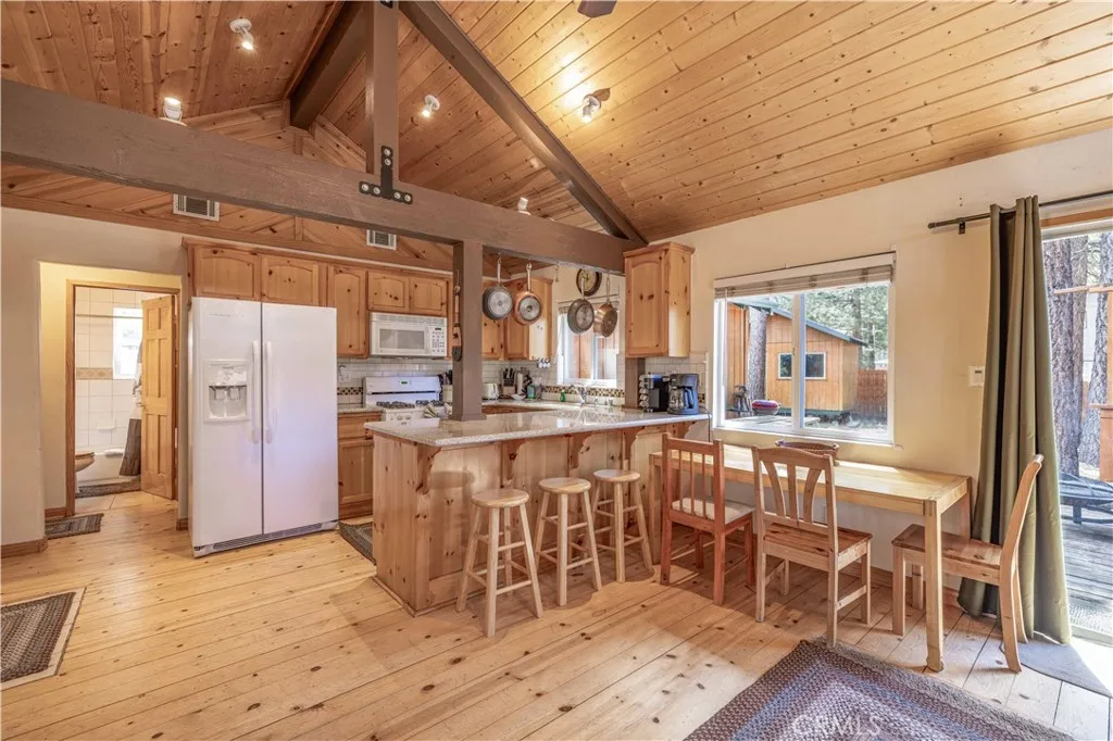 Nestled among the trees in Moonridge, this charming cabin is just minutes away from all that Big Bear has to offerskiing, snowboarding, boating on the lake, visiting the zoo, golfing, hiking, dining, and shopping in the Village. This is the "Classic Cabin" you've been dreaming of. Featuring 2 bedrooms, 2 full bathrooms, an original Big Bear rock fireplace, custom wood flooring and cabinetry, and a modernized kitchen with granite countertops and updated appliances. The open-concept living and dining areas flow seamlessly into the kitchen, creating a spacious and inviting atmosphere. Step outside to a private back deck with a new privacy fence and Jacuzzi, all installed in 2022. The driveway and A.C. are also newER. Plus, the home can come fully furnishedjust pack your bags and head to your perfect getaway in Big Bear!