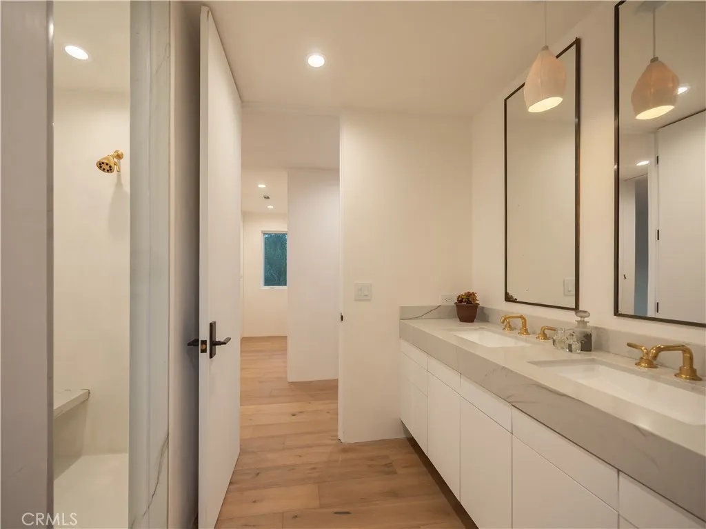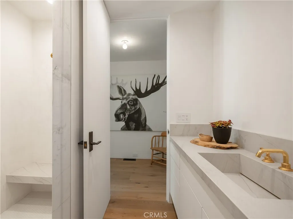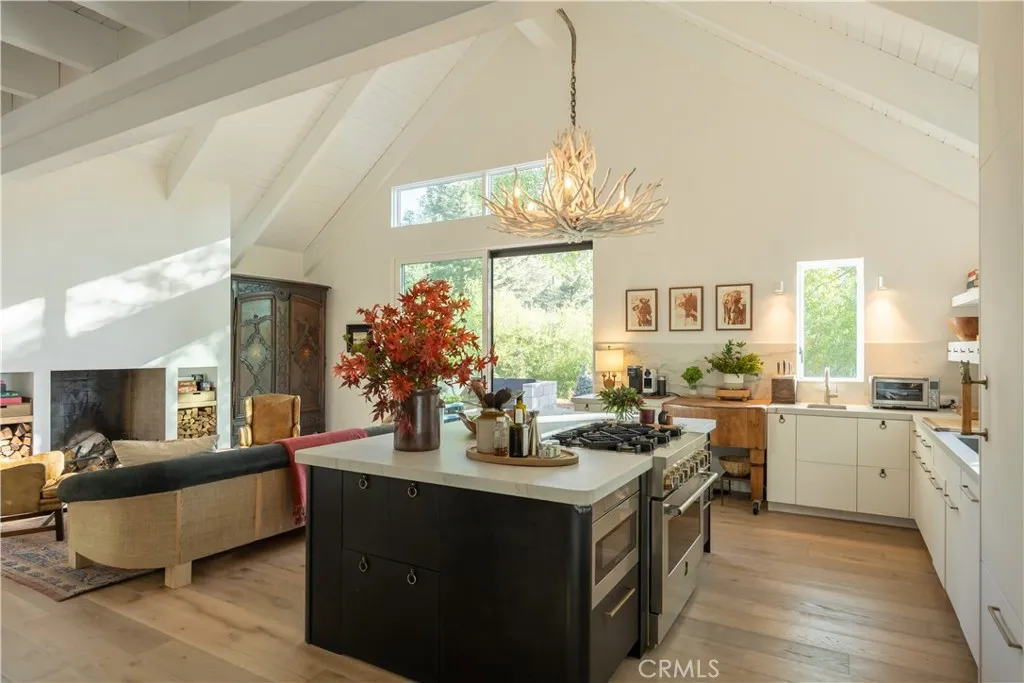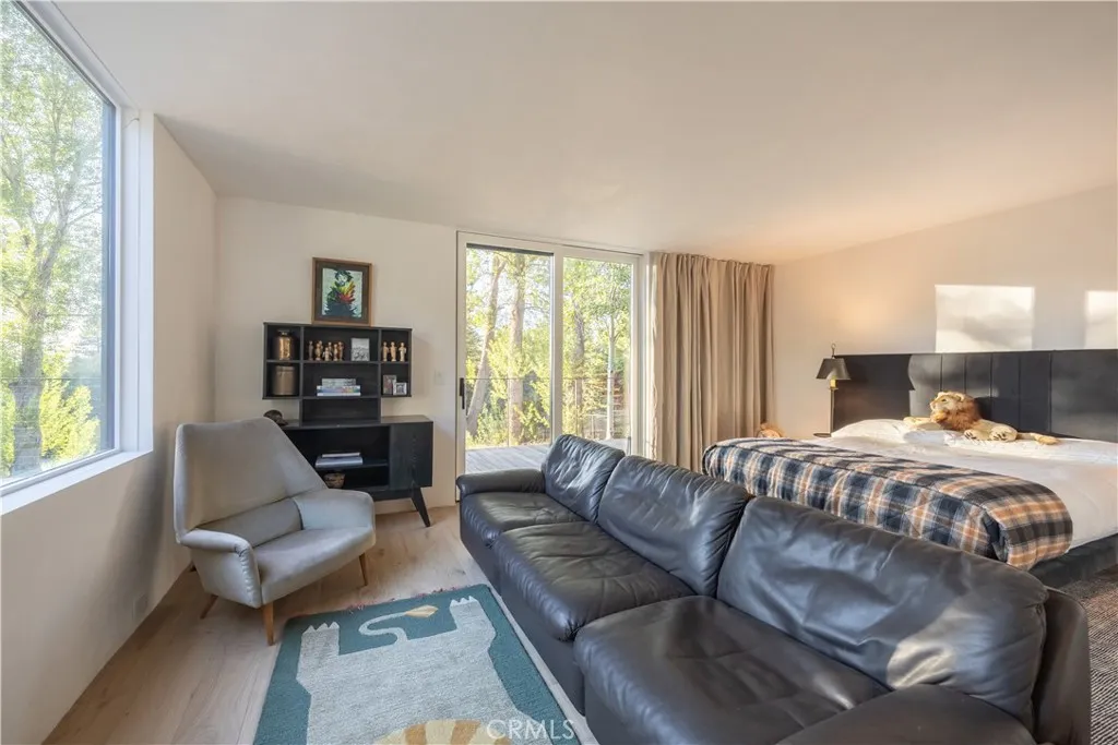 Welcome to 43612 Shasta Road, the crown jewel of Big Bear Lakes highly coveted Moonridge neighborhood. This modern mountain home sits on over one half acre and has been completely and thoughtfully reimagined by one of L.A.s top designers as a personal private retreat. Design of this caliber is a triumph and rarely offered for sale. The beautiful blend of rustic barnwood and sleek contemporary materials make this home Pinterest worthy. The custom steel entry door sets the tone for the elevated design and meticulous attention to detail that awaits within. Luxury finishes are found throughout the home, including white oak floors, hand-plastered walls, and one-of-a-kind lighting. Step into the open living room, dining room, and chef's kitchen with 18 ft beamed ceilings and large masonry wood-burning fireplace. Walls of glass and 10 ft doors seamlessly connect the indoor entertaining area to the aged Ashwood wraparound decks. The well-equipped kitchen features a massive island with a gas range and breakfast bar, as well as two sinks, an antique butcher block, natural stone countertops, and paneled appliances. This home features dual primary suites, one on the entry-level and one upstairs, both featuring en-suite bathrooms and extensive mountain views through large picture windows. An expansive third bedroom, currently used as a bunk room, offers plentiful options for children and guests and has a private en-suite bathroom. An upstairs family room is the ideal space for a home theater or relaxing after a day in the mountains. Located moments from Bear Mountain and stunning nation