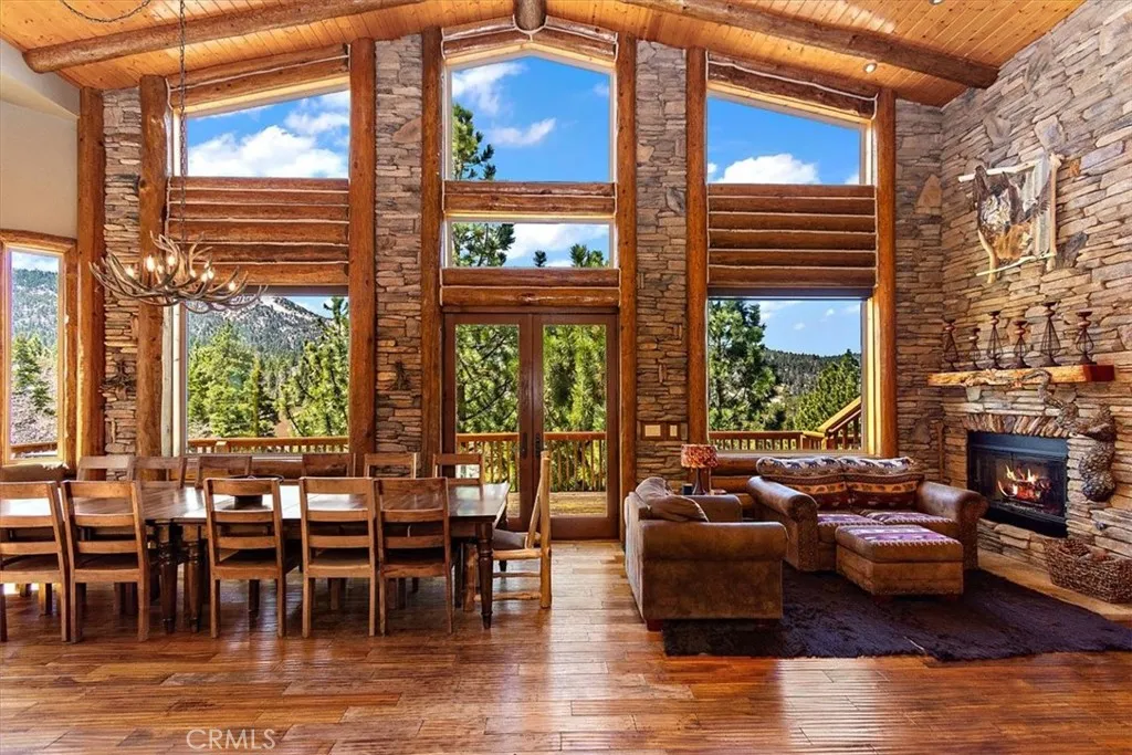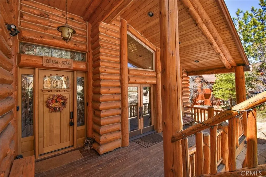 This epic custom-built log home has some of the most commanding views of the lake and ski-slopes in Moonridge. The pinnacle of luxury, this property has so many amazing amenities! Gourmet stainless-steel kitchen open to massive dining room with wide views of the slopes through the full wall of display windows accented by log and stonework; Five stone fireplaces including one at the deck across from the spa just outside the primary suite and one inside the primary suite along with a wet bar; detailed artisanal work in the custom laid mosaic floor tiles, custom carved fireplace mantles with artistic details, and layers upon layers of knotty-pine log accents. This property has many entertaining spaces inside and out, including a parlor off the entry with a fireplace, lofted game room with another fireplace, wet bar and counter seating, a shady front porch, a deck off the loft with lake views, a deck off the dining area with ski slope views, a secluded deck off the primary suite with spa, and a deck off the ground floor with more views. Theres also a fifth sleeping area off the lower hallway. In addition to the mountain charms, this home has modern features such as Nest Thermostats, exterior cameras, two dual-zoned forced-air heating units, air-conditioning unit on the top floor, two tankless water heaters, heated driveway, heated towel-rod and travertine floors in the primary suite, a gorgeous outdoor water feature, and three-car attached garage. Located near ski slopes, national forest hiking trails, shopping and dining, events and activities, this property has been a success