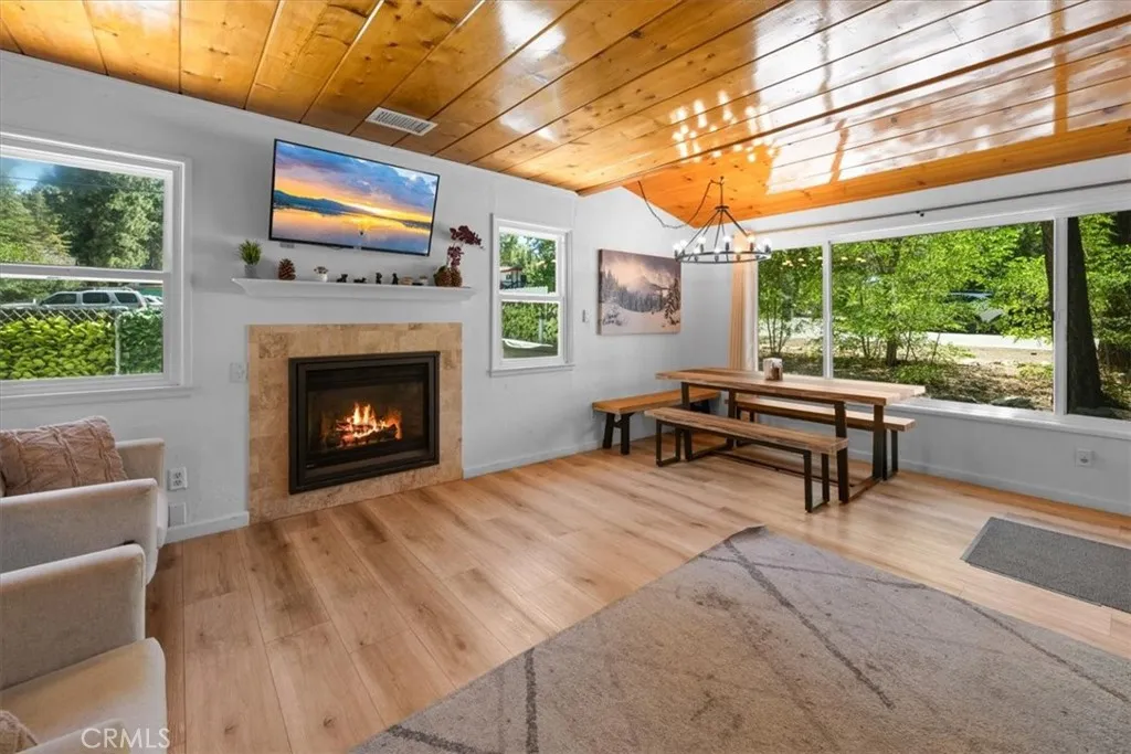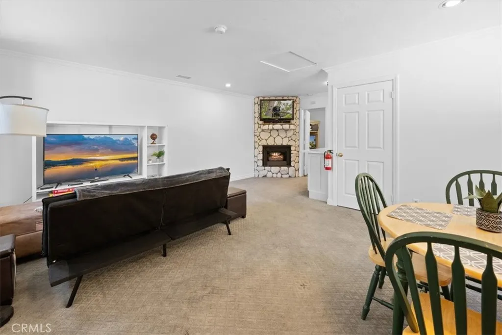2 Units!! Charming Mountain Retreat with Casita, Hot Tub & Game Room Prime Big Bear Lake Location! This investment friendly 2 bedroom 2 bathroom main house has a BONUS one bedroom one bath Casita with spacious living area, space for a kitchenette, which is ideal for extra guests or rental income. Step inside the main home and be greeted by a bright and airy living room featuring a large picture window with neighborhood views and a cozy fireplace for those chilly mountain evenings. The open-concept layout flows nicely with a built-in buffet and a beautifully updated kitchen with butcher block countertops open cabinets and plenty of storage. Easy, flat parking on the circular driveway in front of the house. The Casita features its own private entrance, a generous living space that includes one bedroom, a bath, with room for a kitchenette to be added refrigerator included this space definitely offers flexibility for guests or extended stays. As an added BONUS, there is also a 2 car garage with an additional driveway (currently being used as a game room with pool table, darts and basketball hoop). On the back patio you can unwind under the stars in your Hot Springs 6-person hot tub, or gather around the fire pit. The circular driveway in front This home offers comfort, functionality, and the ideal location whether you're looking for a full-time residence, vacation getaway, or income-producing property, this gem checks all the boxes! This home is being sold fully furnished.