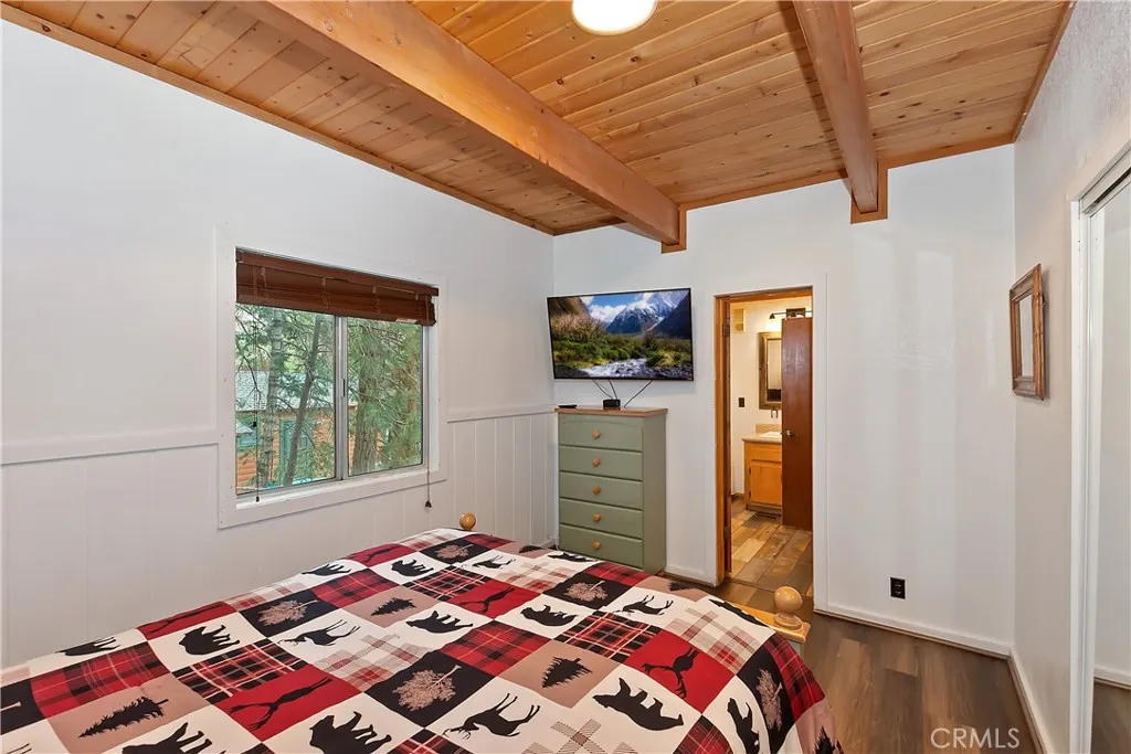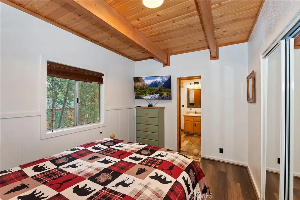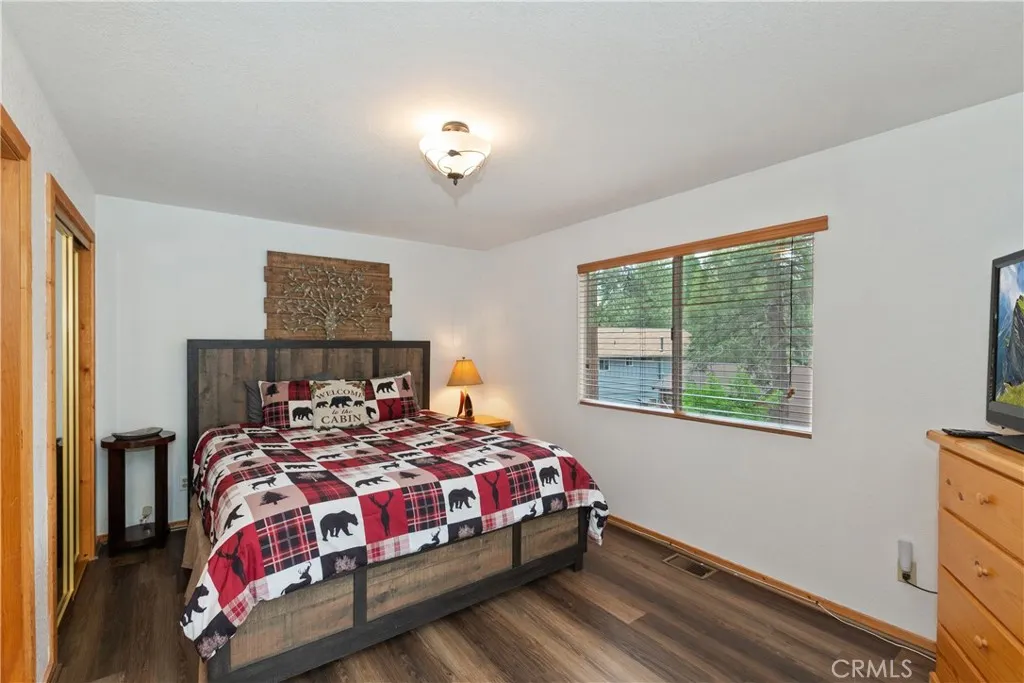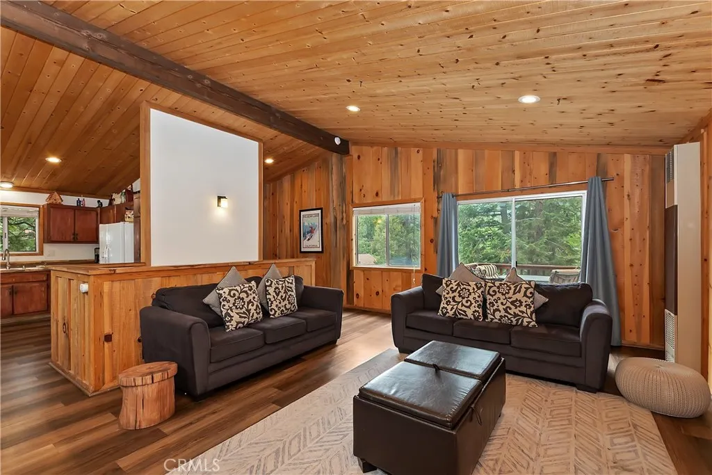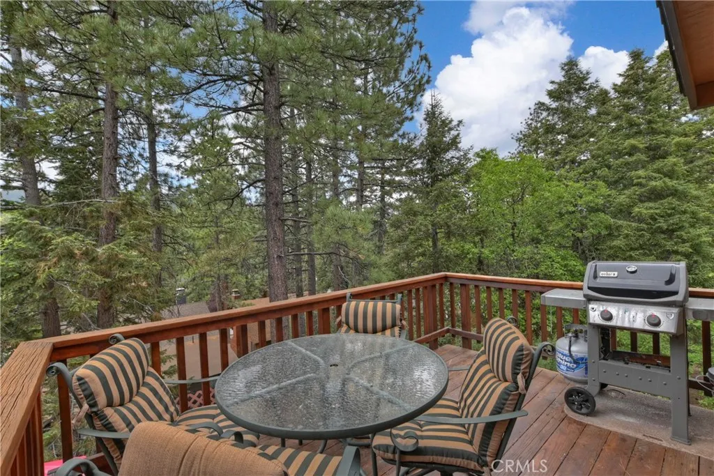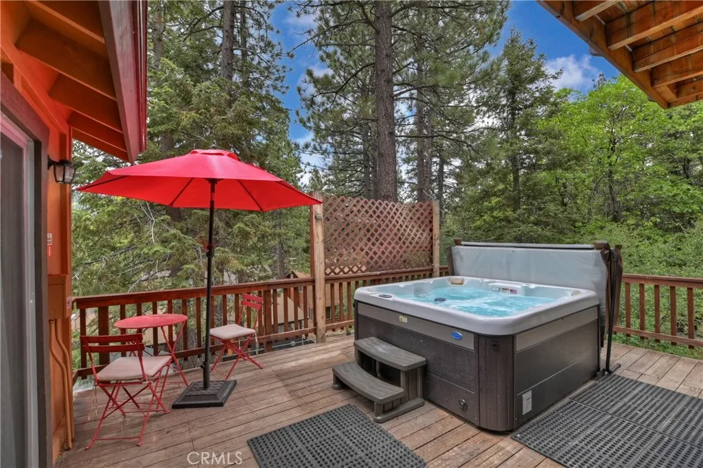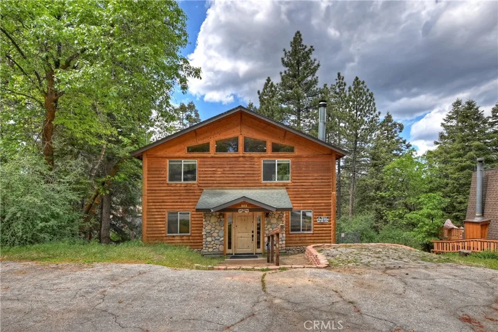 Beautiful log-sided Chalet with ski slope views! ~ This charming mountain home offers the perfect blend of rustic elegance and modern comfort ~ Located just minutes from Bear Mountain Resort, this three bedroom, three bathroom chalet is situated on a spacious lot with ample parking and stunning south-facing views of the ski slopes ~ The living room features inviting wood interior accents and vaulted wood-beamed ceilings, abundant natural light, and a cozy corner fireplace ~ The multilevel decking provides ideal outdoor living space, complete with a new spa for soaking under the stars ~ Two of the bedrooms are en-suite, making this home well-suited for full-time living, a weekend retreat, or continued success as a proven vacation rental ~ The layout is ideal for entertaining and offers flexibility for families, couples, groups and even pets, offering a fenced yard ~ Minutes from skiing, hiking, golf, the zoo, and Big Bear Lake ~ Enjoy the fresh mountain air, slower pace of life, and close proximity to all that Big Bear has to offer ~ Enjoy the luxury of top-notch amenities ~ Don't miss your opportunity to create memories that last a lifetime.