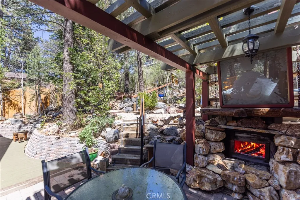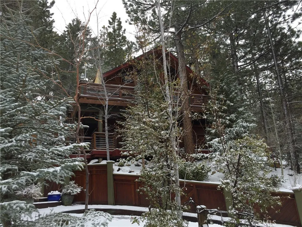 Perched among the trees in sought-after Moonridge, this one-of-a-kind Tree of Life retreat is far more than a cabinits an enchanted artistic and writers retreat, a living work of art. This 2-bedroom with a loft, 2-bath artisan-crafted home offers a rare blend of architectural beauty, natural surroundings, and unforgettable views of the lake and ski slopes, all just minutes from Bear Mountain. Originally handcrafted over a decade by a master craftsman as a tribute to his wife, every inch of this home tells a story. Custom woodwork, intricate glass details, and curated artistic elements are thoughtfully woven throughout, highlighted by the stunning Tree of Life mosaican irreplaceable centerpiece that defines the homes character. The open-concept living space is warm and inviting, designed to bring the outdoors in with expansive windows framing treetop vistas. A custom kitchen features high-end appliances, unique finishes, and a handcrafted island, flowing seamlessly into the dining and living areasperfect for entertaining, quiet mountain evenings, or creative inspiration. The main-level Tree of Life suite serves as a romantic and artistic sanctuary, ideal for reflection, writing, or peaceful escape. It features a cozy queen bed and one of the homes most breathtaking focal points. This room showcases extraordinary custom leaded glasswork and three handcrafted cedar closet doors, each weighing approximately 200 pounds and adorned with an intricate mosaic of crushed stone, glass, and tile. Taking over a year to complete, this remarkable installation stands as a true testament to