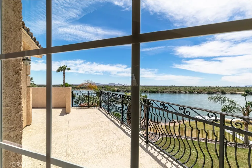 Look no furtherTHIS IS IT! The riverfront dream property youve been waiting for. This custom, furnished RIVERFRONT estate features TWO stunning homes on a 1+ acre parcel complete with a private launch ramp, boat dock, and sandy beachthe ultimate retreat for family, friends, or exceptional rental potential. Designed for entertaining, each home offers an expansive open-concept layout with impressive river views from every room. The main level features a spacious great room with pool table, a dining area, and a gourmet chefs kitchen showcasing timeless cabinetry with pullout drawers, granite countertops, stainless steel appliances, and a massive breakfast bar perfect for gathering. Downstairs, the three generously sized bedrooms and two bathrooms provide plenty of comfort for guests. The entire upper level of both homes is dedicated to a private master suite, complete with a cozy fireplace and a large riverfront view deckyour own quiet sanctuary with unforgettable views. Beautiful upgrades include Versailles-pattern travertine flooring, raised panel doors, recessed lighting, surround sound, ceiling fans, custom baseboard and crown molding, built-in entertainment center, reverse osmosis, water softener system, and more. Both homes come fully furnished and ready for immediate move-in or rental use. A massive 36' x 33' detached 6-car garage provides separate garage doors for each owner, plus two RV spaces with full hookups. Electricity is metered separately, while both homes share costs for property taxes, water, leasehold, and maintenance. Easy access to miles of open desert mak