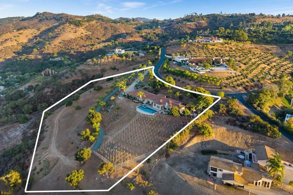 Imagine a place where every day feels like a luxurious escapea private sanctuary bathed in California light, seamlessly blending the elegance of the Mediterranean with the tranquility of Wine Country. Welcome to Sol Toscano, or "Tuscan Sun," a magnificent single-level estate gracefully set atop the rolling hills of Hialeah Rancho Estates. This over 4,000 square foot retreat is designed for the discerning individual seeking timeless refinement and absolute serenity. Here, on 4.4 acres of exquisitely landscaped grounds, panoramic vistas of Moody Creek Vineyards and the tranquil valley below transform every sunrise and sunset into your personal, private masterpiece. Your journey begins at the custom automatic gate (installed 2023), which unveils a landscape reimagined by the masterful touch of Tomas Ramirez. Over 400 flourishing dragon fruit trees surround the magnificent infinity-edge pool, creating a unique and vibrant orchard backdrop. Meander along incredible stone paths that lead to secluded seating areas and a sculptural Stonehenge garden. As dusk settles, new outdoor sconces cast a warm, enchanting ambiance across the entire estate. Inside, Sol Toscano is a masterclass in elevated comfort and bespoke craftsmanship. The home was fully repainted in 2023, providing a clean, refined canvas for warm finishes, custom millwork, and designer lighting. The boundary between indoors and out dissolves with expansive Fleetwood doors and windows, featured in the living room, front entry, and the primary suites trifold door, offering sweeping views from every angle. At the heart of th