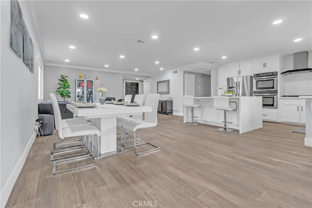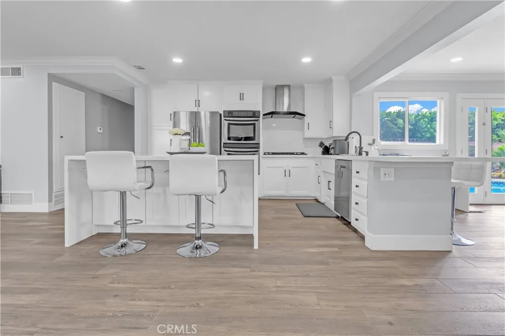 Welcome to this stunning single-story pool home, beautifully remodeled and perfectly located in the highly desirable city of Brea. Sitting on a spacious corner lot, this residence combines modern elegance with everyday comfort and resort-style living. Step inside and youre greeted with an open-concept floor plan featuring wood-look tile flooring, recessed lighting, and large windows that fill the space with natural light. The dining and living areas flow seamlessly into the chefs kitchen, complete with quartz countertops, a waterfall island, stainless steel appliances, white shaker cabinetry, and double ovensmaking it both stylish and functional for everyday living or entertaining. The spacious family room, anchored by a cozy fireplace, opens to the backyard through French doorsleading you to your own private retreat. Outside, enjoy a sparkling pool, a covered patio with lounge seating, custom paver hardscape, and a turf play areadesigned for both relaxation and entertainment.Located in a quiet neighborhood with award-winning Brea schools, shopping, dining, and easy freeway access, this home truly offers the perfect blend of lifestyle and convenience. Dont miss the opportunity to call this Brea gem your forever home!