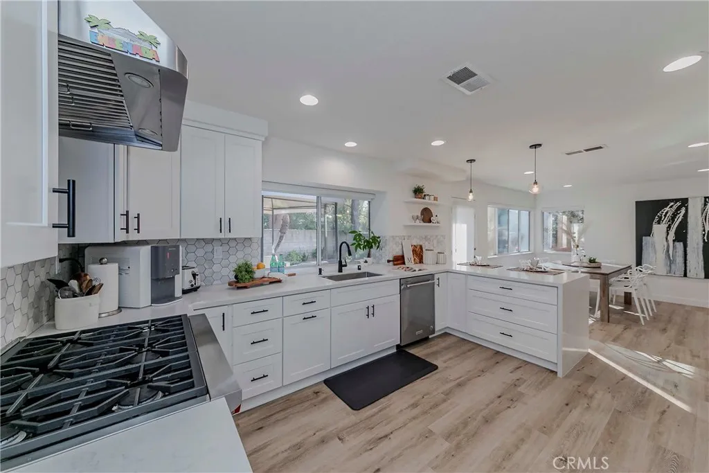 Beautifully Upgraded Home in the Highly Sought After Fieldstone Terrace Community. The spacious living room features cathedral ceilings, tall windows that fill the space with natural light, and an adjacent formal dining area, perfect for entertaining family and friends. The remodeled kitchen is a true showpiece, offering elegant cabinetry with abundant storage, quartz countertop, all new Kitchen Aid oven, microwave, dishwasher, and Wolf stove, beautiful full backsplash, recessed lightings, bay window, and generous counter space. It opens seamlessly to the breakfast nook and family room, creating a warm and inviting space for everyday living. The main floor includes a bedroom with a bath, currently used as a private office but easily convertible into 5th bedroom, providing excellent flexibility for guests or multi generational living. Additional conveniences include an inside laundry room and direct access to the 3 car garage. Upstairs, the luxurious primary suite features double door entry, vaulted ceilings, sky lights, mirrored walk-in closets, and a bath with a glass enclosed shower, soaking tub, and dual sinks. Three additional spacious bedrooms share a beautifully remodeled bath with double sinks and a glass enclosed shower. Step outside to your private tropical retreat, a beautifully landscaped backyard with mature greenery and plenty of space for entertaining or relaxing. This home also features solar panels, providing substantial savings on electricity costs year round. Residents of the Fieldstone Terrace community enjoy access to resort style amenities, including a