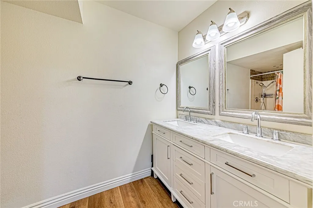 Welcome to Cameron Park, a well-maintained townhome community in the heart of Buena Park! Although a townhome, this end-unit offers enhanced privacy and the feel of a single-family home. This beautifully upgraded 4-bedroom, 2-bath townhome features an open and bright floor plan with soaring vaulted ceilings in the living room, a cozy fireplace, and an abundance of natural light throughout. The primary bedroom suite is conveniently located on the main floor, while upstairs features two spacious bedrooms, one of which was thoughtfully expanded by combining two rooms into one, creating a generous and versatile living space. The remodeled kitchen features white shaker cabinets, quartz countertops, stainless steel appliances including a freestanding gas range and dishwasher, and a breakfast bar. Additional upgrades include full Milgard dual-pane window replacement throughout, newer sliding glass doors, updated HVAC system with central A/C, Google smart thermostat, recessed lighting in the living room, kitchen, and dining area, refreshed garage floor with crack repair and fresh paint, garage door and opener replacement, and an updated primary bathroom with a dual-sink vanity and granite countertop. Enjoy the private patio perfect for outdoor relaxation, an attached 2-car garage with direct access, and community amenities including a pool and clubhouse. Friendship Park (formerly Smith Murphy Park) is located directly across the street. Zoned for award-winning Emery Elementary, Beatty Middle School, and Sunny Hills High School. Conveniently situated near major freeways, shopping, d