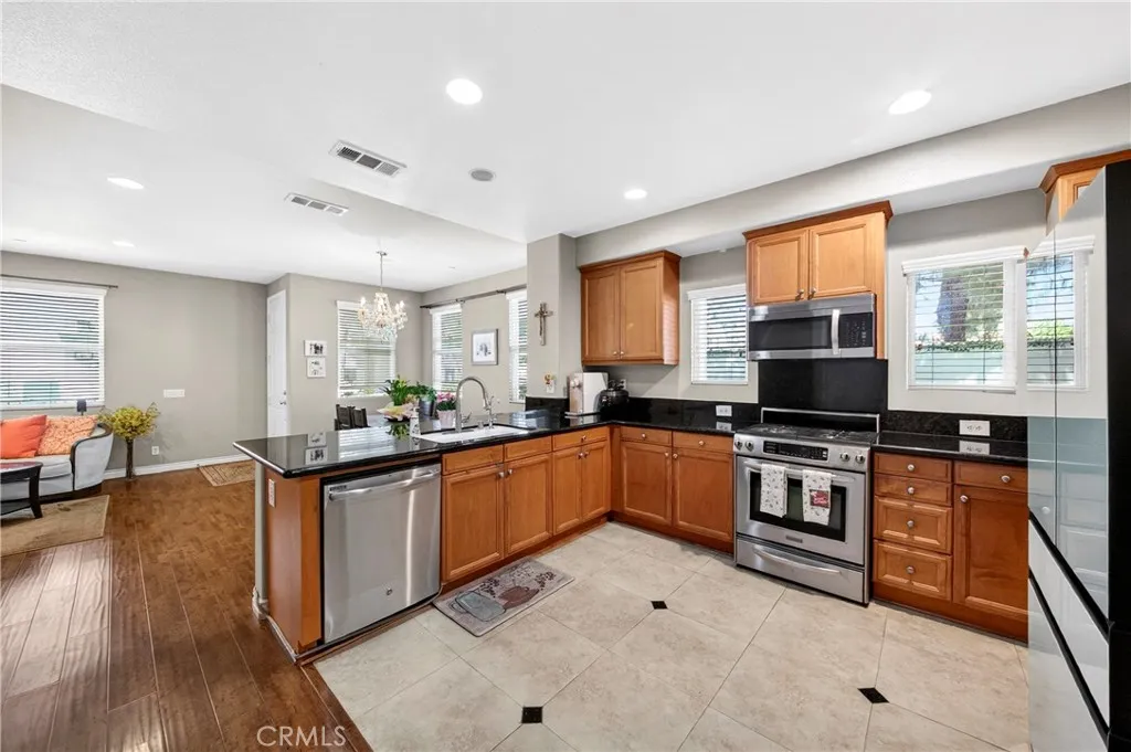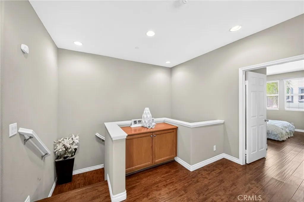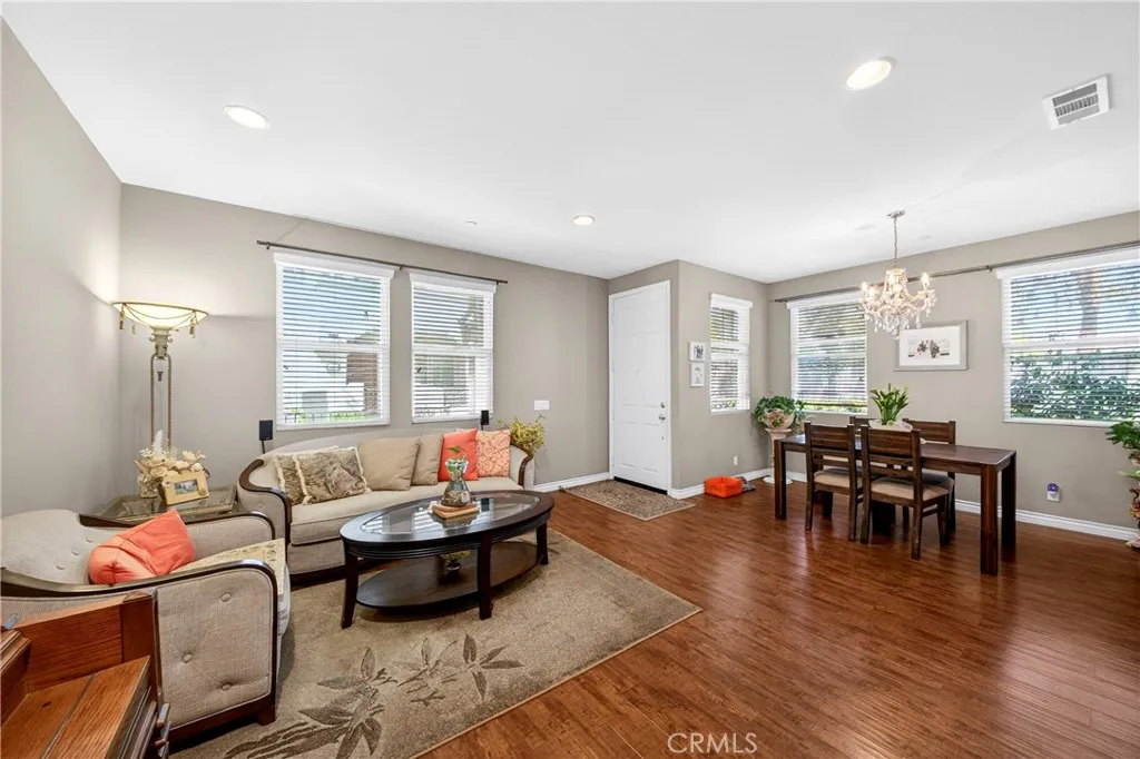 Beautifully maintained, luxurious end-unit townhome located in the prestigious gated community of Founders Walk. This modern residence showcases an open-concept floor plan featuring 3 bedrooms, 2.5 bathrooms, and a versatile loft ideal for a home office, family room, or additional living space. Interior highlights include laminated wood and tile flooring, recessed lighting, and a spacious kitchen with ample cabinetry, granite countertops, and stainless steel appliances. The primary suite offers dual closets and a private en-suite bathroom complete with separate tub and shower, along with dual vanities. Additional features include a convenient second-floor laundry room and direct access to an attached two-car garage, providing both comfort and functionality. Recent upgrades include a newly replaced water heater and a new garage motor and springs installed in 2025. Residents enjoy resort-style amenities including a pool, spa, clubhouse, playground, picnic areas, and abundant guest parking. Ideally located near shopping centers, restaurants, markets, banks, the Metrolink station, and nearby golf courses, this home offers the perfect blend of luxury living and everyday convenience.