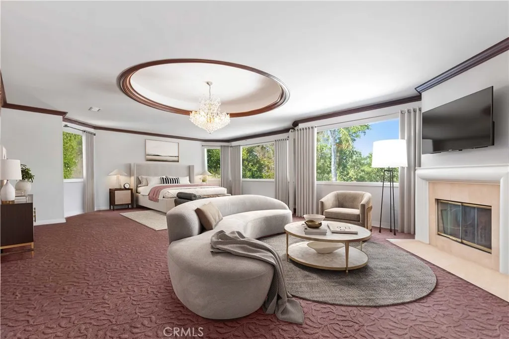 Luxury meets value! Major price reduction!!! Serious seller. In addition to being a gorgeous home this is an incredible value. Located in the exclusive guard gated community of Mountain View Estates this customized and expanded Plan 7, with 6868 sq. ft. of luxury living features 6 bedroom suites, including 2 primary suites and a 4 car garage. Bedrooms 5 & 6 are being used as a home theater and a large game room. Situated on a single loaded cul-de-sac street this property is meticulously maintained and offers gorgeous curb appeal. Inside is a dramatic 2 story entry featuring a wrought iron staircase, marble flooring & Murano glass chandelier. The family room offers custom built-in cabinets, hardwood floors, a wet bar, fireplace, & is open to the huge kitchen with grand size eating area, walk-in pantry, European cabinets, large center island & a butler's pantry. The formal dining room has French doors to the beautiful side yard, a large crystal chandelier and built-in buffet cabinets. The formal living room has coffered ceilings, hardwood floors, a fireplace & crystal chandelier. The larger of the 2 primary suites features a fireplace, 2 large walk-in closets and a grand bathroom with spa tub, dual vanities and shower. The smaller primary suite offers 2 closets and a bathroom. There are 2 additional bedroom suites upstairs. Both downstairs bedrooms, one used as a home theater and the other as a game room have bathrooms and hardwood floors. The backyard offers a private verdant sanctuary with lush landscaping, a beach entry salt water pool with a large art sculpture, stone sta