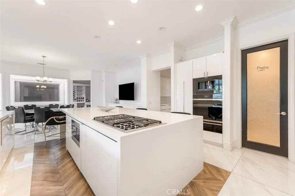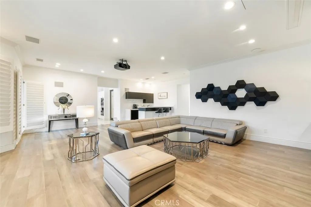 A rare opportunity to own an extraordinary 8,000+ sq ft luxury smart home set within a prestigious guard-gated Calabasas community. This fully upgraded residence showcases a dramatic grand entry with soaring ceilings, leading to a beautifully remodeled gourmet kitchen featuring Sub-Zero, Wolf, and Miele appliances, custom cabinetry, and a generous walk-in pantry. Designed for elevated modern living, the home is outfitted with Control4 home automation, LED lighting, Cat-6 wiring, and a whole-house sound system. The expansive family room is ideal for both entertaining and everyday comfort, complete with a fireplace, custom bar, built-in projector, and dual wine coolersperfect for movie nights and gatherings. An oversized formal dining room comfortably accommodates 30+ guests. The luxurious primary suite serves as a private retreat with a sitting area, fireplace, dual walk-in closets, and a spa-inspired bath featuring a steam shower. Step outside to a resort-style backyard offering a saltwater pool, outdoor kitchen with BBQ, refrigerator, stove, and warming drawer, multiple covered seating areas, and an outdoor projectorcreating the ultimate indoor-outdoor lifestyle. Additional highlights include a soundproof podcast studio and a temperature-controlled wine room capable of housing over 100 bottles. A true entertainers dream located in one of Calabasas most desirable gated neighborhoods.