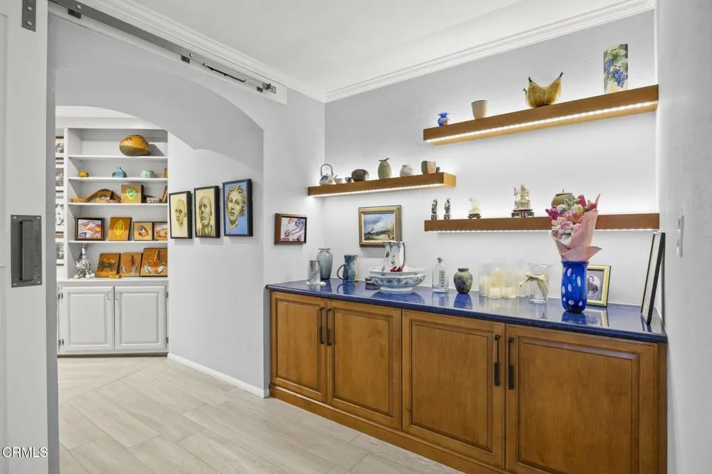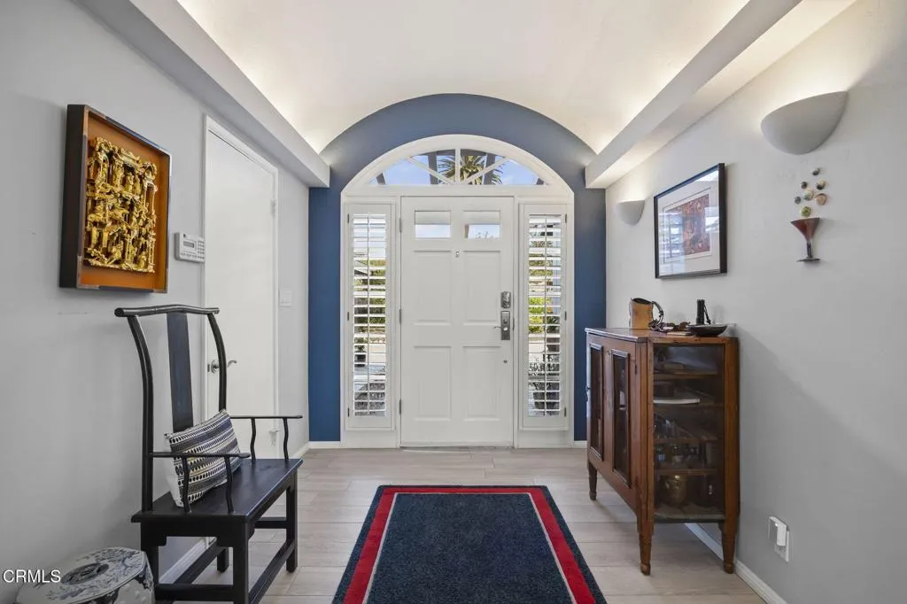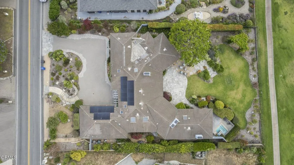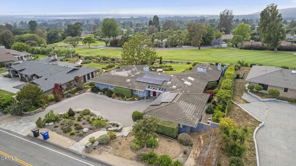Back on the market with a incredible price improvement! Experience breathtaking golf course and mountain views from this stunning single-story home, ideally positioned on the 16th fairway of the Las Posas Country Club. Designed for true indoor-outdoor living, this property offers expansive multiple flagstone patios, lush landscaping, vibrant rose gardens, and a majestic magnolia tree--all framed by the natural beauty of the golf course. A gated path provides direct access to the fairway, perfect for a peaceful morning stroll or evening golf cart ride.From the moment you arrive, the home makes a refined statement with a oversized paver stone driveway, a bold red front door, and elegant flagstone entry. Inside, soaring ceilings, light wood-look tile flooring, skylights, and abundant natural light create an inviting, airy atmosphere. The home is thoughtfully equipped with an owned solar energy system and backup battery for energy efficiency and peace of mind.Views from almost every room! Formal living and dining rooms each feature a fireplace and French doors that open to the backyard, seamlessly blending indoor comfort with sweeping outdoor vistas. A third fireplace warms the secondary suite, offering a cozy retreat in its own private wing.The chef's kitchen is both stylish and functional, with dual islands (granite for seating and butcher block for prep), white cabinetry, granite backsplash, and premium appliances. A walk-in pantry provides ample storage, while a built-in breakfast nook with yard access adds charm.The spacious primary suite is a true sanctuary, with French d