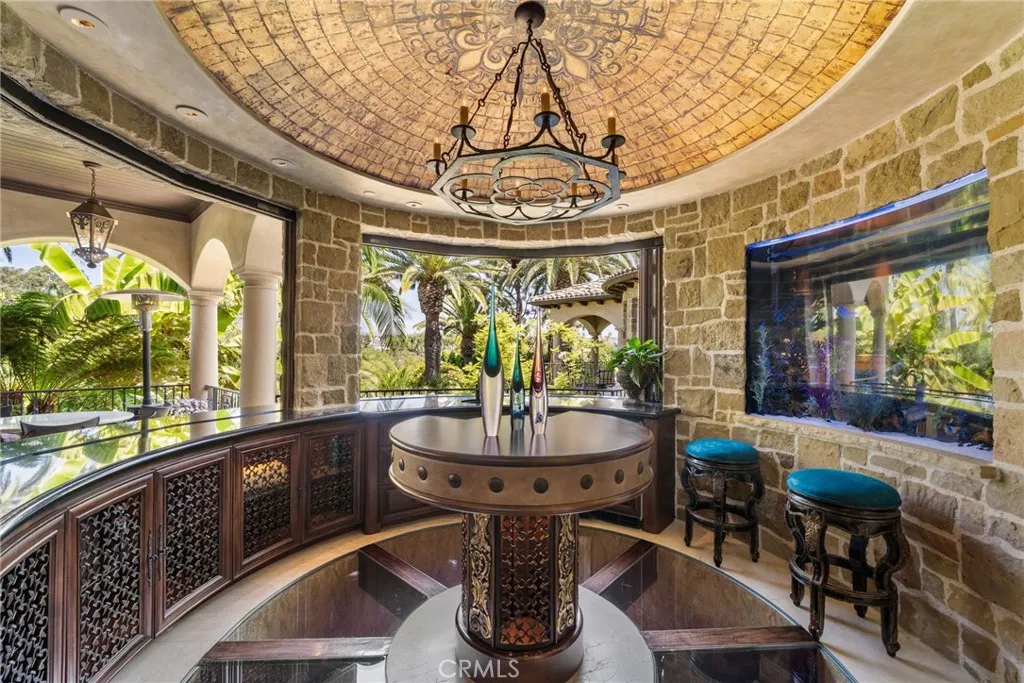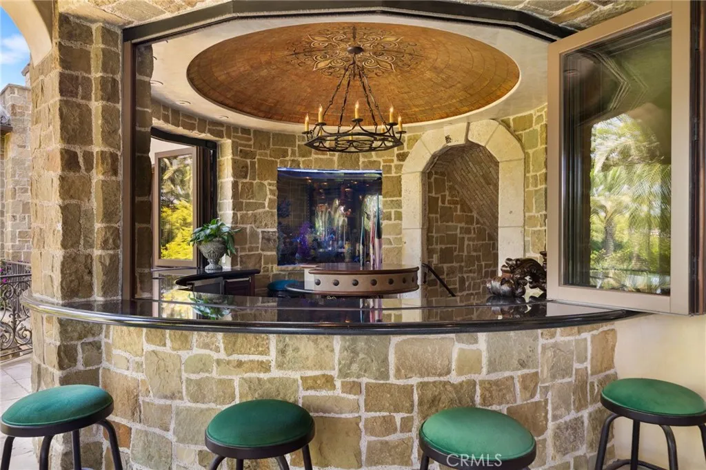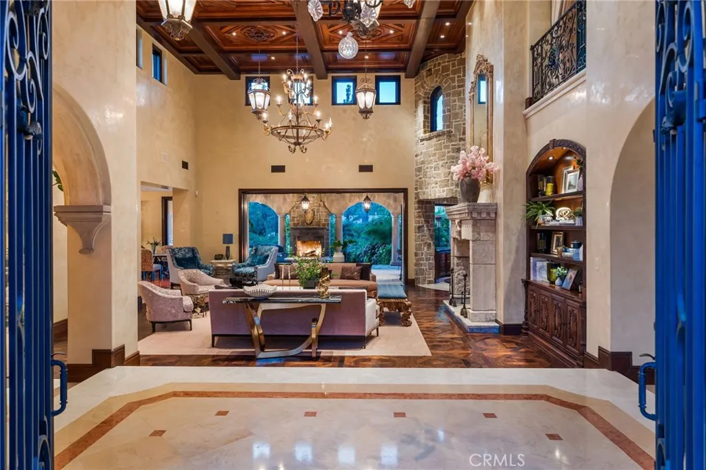 MOTIVATED SELLER OFFERS an EXCEPTIONAL VALUE! $600K price improvement since listed and is NOW OFFERED FULLY FURNISHED ($500K value) if in escrow by 12/31/25 (subject to inventory list). HAVE A HOME TO SELL? SELLER WILL CARRY UP TO 50% until your home sells (subject to qualification). AMAZING ESTATE HOME Set behind private gates and a striking stone faade, this stunning Italian Villa offers resort-style living with unmatched privacy and luxury amenities. Designed with timeless craftsmanship and modern comforts, nearly all bedrooms are located on the main floor, with elevator access throughout the home. A separate guest casita and a fully equipped guest cottage (complete with kitchen, laundry, living room, and bedroom suite) make hosting effortless. Inside, the home features Venetian plaster walls, imported limestone and marble, custom cabinetry, and beautiful Versailles-pattern wood floors. The great room boasts dramatic beamed ceilings and a stone fireplace, while the formal dining room opens to a peaceful courtyard. Five balconies and multiple courtyards create inviting indoor-outdoor living spaces. The gourmet kitchen includes a large island, butlers pantry, and Wolf/Sub-Zero appliances. Disappearing doors lead to a covered loggia with outdoor fireplace, Viking-equipped kitchen, circular bar, and a unique glass floor with a view into the wine cellar below. The impressive lower level offers a climate-controlled wine room with seating for 20, kitchenette, bath, and an adjacent home theater. A private patio with firepit sits along flowing water features for a serene retreat.