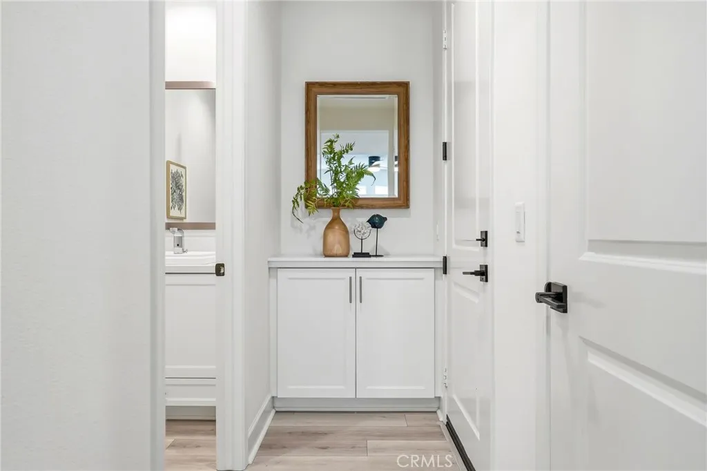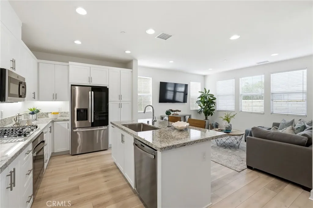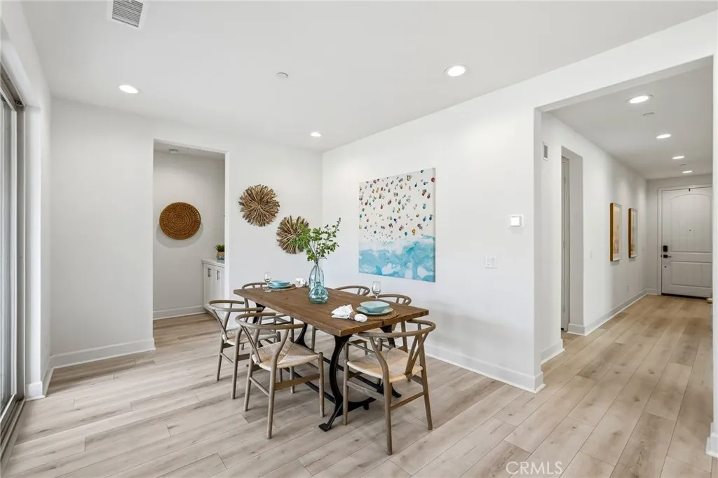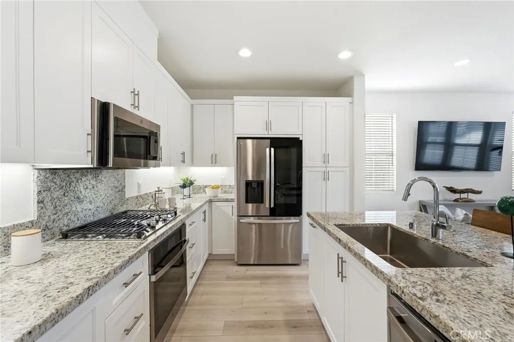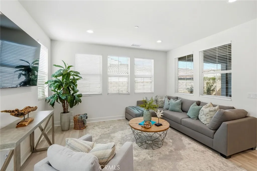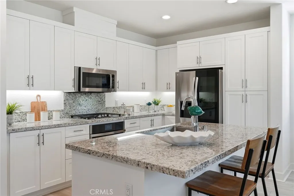 Welcome to 5024 Rexton Drive, nestled in the tranquil and highly desirable area of Camarillo, California. Located within The Grove, an exclusive gated community designed for residents 55 and older, this home blends refined comfort with modern convenience in a serene setting. This beautifully appointed Pomelo Model, Residence 2, offers approximately 1,519 square feet of living space, featuring two spacious bedrooms, two-and-a-half bathrooms, and a versatile den or office ideal for work or relaxation. Numerous upgrades were professionally selected, adding both style and long-term value. The open-concept floor plan is enhanced by luxury vinyl wood plank flooring throughout, providing durability with a warm, sophisticated aesthetic. Dual-pane windows and classic white wood blinds fill the home with natural light while maintaining privacy. The kitchen stands out with upgraded white shaker cabinetry with soft-close doors and drawers, granite countertops, stainless steel appliances, and recessed lightingcreating an inviting space for cooking and entertaining. The living area flows seamlessly to a covered patio with a ceiling fan, perfect for outdoor enjoyment. What truly sets this home apart is its rare lot placement. The side opens to a landscaped common area with guest parking, a feature not commonly found in the community. Additionally, the property offers a double-width entry patio and expanded rear walkway, providing more outdoor space and accessibility than most homes. The paver system, landscaping, and irrigation were custom-designed, creating a polished outdoor environment