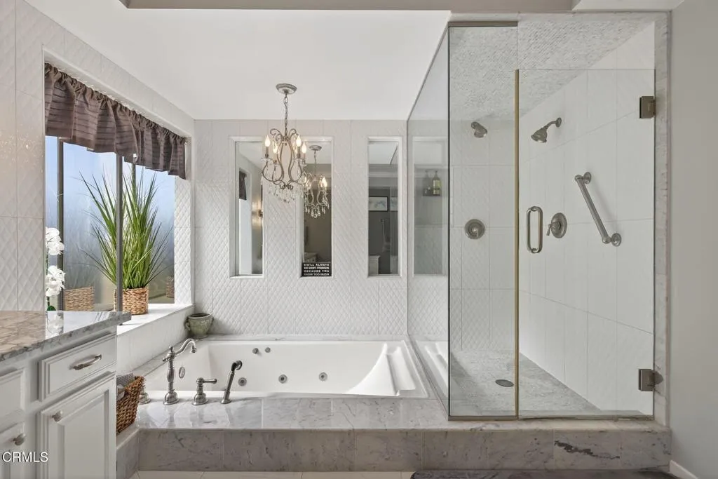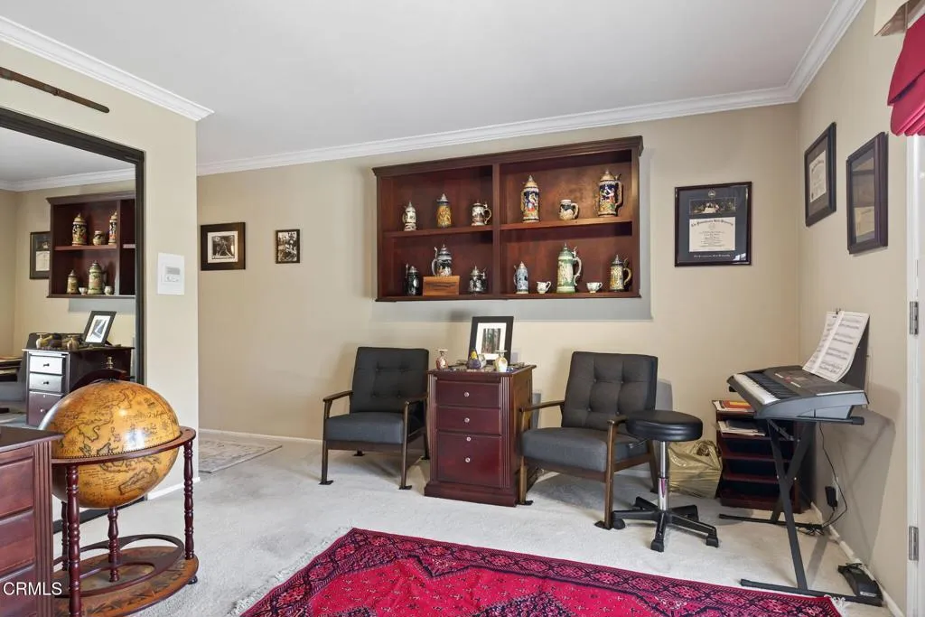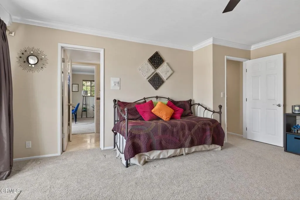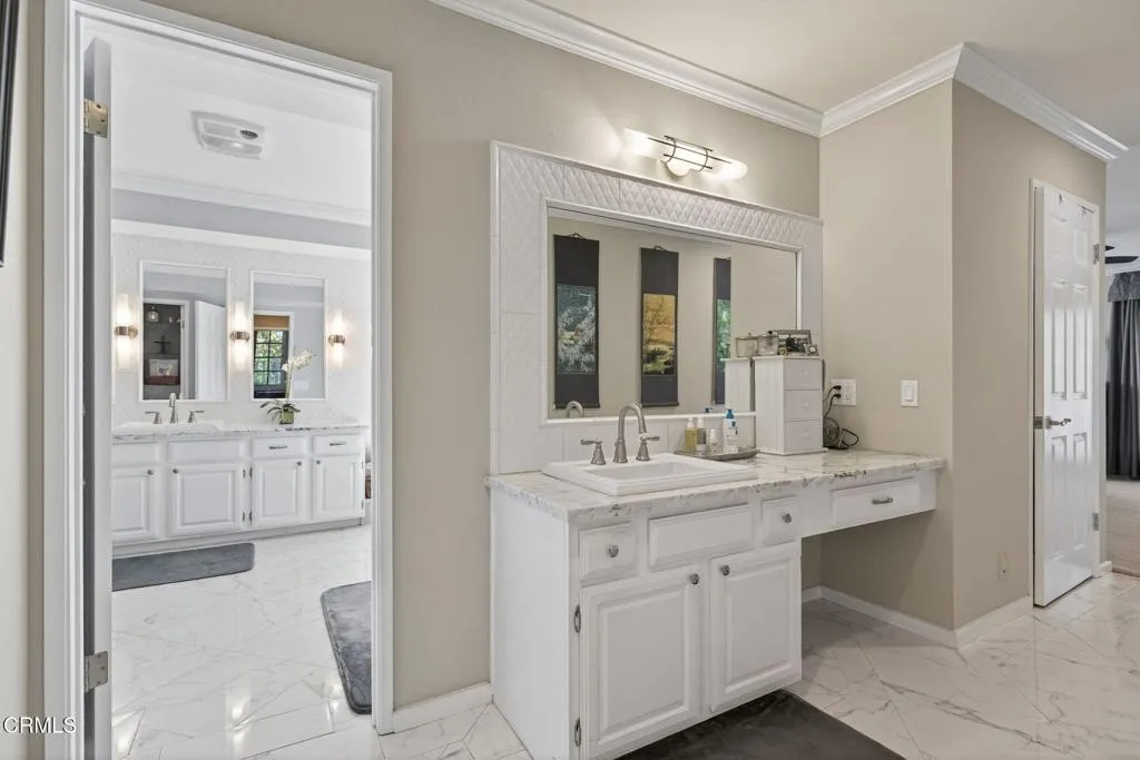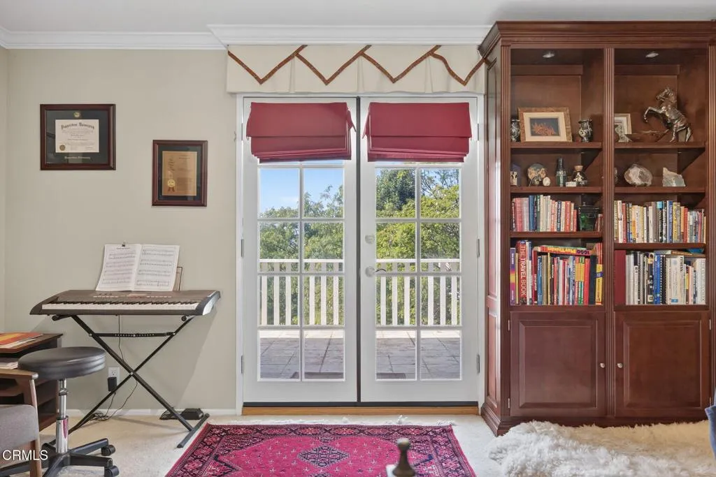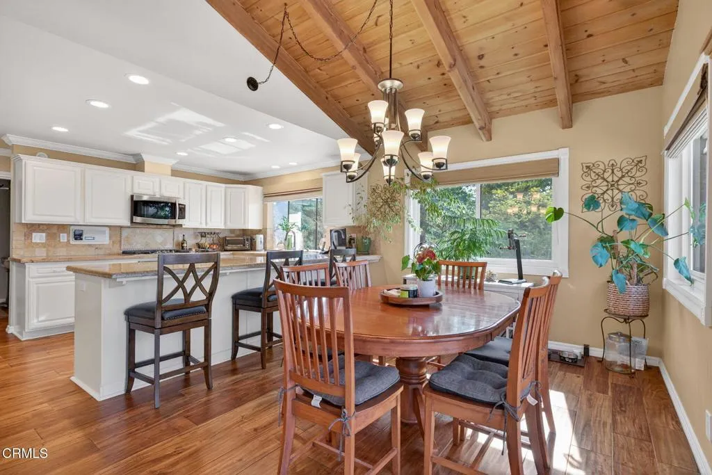 Perched in the Serene Terra Bella Estates neighborhood on a sprawling 1-acre lot, this 3,560 sq ft, 4-bedroom, 4-bathroom architectural stunner offers breathtaking vistas of Camarillo from every room and all three expansive private balconies--your daily dose of coastal-inspired tranquility. With paid solar panels eliminating electricity bills and a Pebble Stone driveway welcoming you home in style, energy efficiency meets effortless curb appeal in this haven of modern comforts and natural beauty. Step inside to vaulted ceilings adorned with exposed natural wood beams and elegant oak woodwork framing every window and door, complemented by newer dual-pane glass for whisper-quiet serenity. Recessed lighting bathes the open living spaces in a warm glow, while crown molding and newer stair railings add refined touches throughout. The heart of the home shines with Acacia engineered hardwood floors flowing seamlessly from the living room to the gourmet kitchen, outfitted with a premium KitchenAid oven and fridge, a built-in wine fridge, a whole-house intercom for seamless communication.Retreat to the primary suite, a true sanctuary featuring an elegant bedroom with a marble accented fireplace and an ample bathroom with mercerized tile floors, a dual-head, upgraded shower with quilted tile walls, a sunken spa tub, a large vanity, and separate makeup area complete with its own sink. Unwind by the versatile wood-and-gas fireplace, slip through French doors to your balcony, or organize in the cedar-paneled walk-in closet. Nearby, see the office (or bedroom) with adjacent full bathroom
