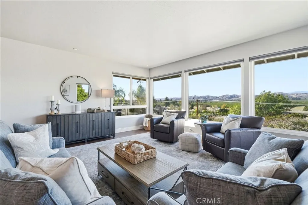 Back on the market and it is your opportunity now...Beautifully remodeled view and pool home in Las Posas Estates in Camarillo. Open floor plan, formal dining room, family room and paid off solar panels. * Main house 4BR, 2.5 BATH, approx. 2758 sf. * Permitted ADU, 1BR, 1BATH, approx. 732 SF built 2022. * Spacious open concept kitchen with views, center island, breakfast nook, high end appliances, two ovens etc. * Large formal dining room, step down living room with large windows and view of the orchards. * A luxurious primary bedroom with a nice deck and views, walk in closet with solar tube, a large remodeled bathroom. * Formal entry with access to a deck for indoor/outdoor living. * Family room with fireplace. * Separate utility room. * Dual pane windows, newer furnace, water heater, upgraded electrical panel, a second sub panel for ADU and new landscaping. * A large flat back yard with a pool that has been very recently re-plastered and has newer pool equipment and a Jacuzzi which makes it ideal for entertainment. Did we mention all the fruit trees on the property?
