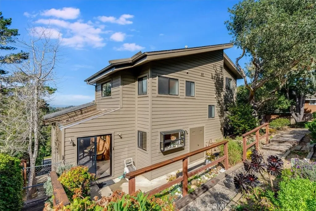 Set in a unique enclave of 18 homes, 3171 Rogers offers panoramic ocean views over Santa Rosa Creek, from virtually all of the 2,700+ sq ft, 3 bed/3 bath home on almost 1/4 acre site! A formal entry greets you, leading to the 5 wide shallow step stairway up to the main floor. Here you will find a 20 X 22 X 10 high ceilings living room with massive windows to take in the Ocean Views right down the Santa Rosa Creek Arroyo, and a deck to enjoy the sunsets. Just steps away from the Fiscalini Ranch trails. Also on the main level is a formal dining room, kitchen, laundry/powder room, and a sunroom, all set in an open-ish plan. The kitchen has a breakfast nook, triple sink, double ovens, an island and access to a BBQ patio. The formal dining has built-ins, a vaulted ceiling and views. The sunroom is an unusual plus, providing a place for pets, solar heat gain, and a sunny sitting area. The 1st bedroom is found half a flight up and has a 3/4 bath. Another half flight takes you to the large Main Suite. Its ensuite bath has a jetted tub, separate shower, 13 of counter & double sinks, and a walk-in closet. Half a flight again is bedroom 3, again with views and volume. All aspects of this home are spacious and oversized and there are ample storage closets throughout! Well maintained home inside and out, private paved driveway and parking, landscaping, etc, waiting for you.