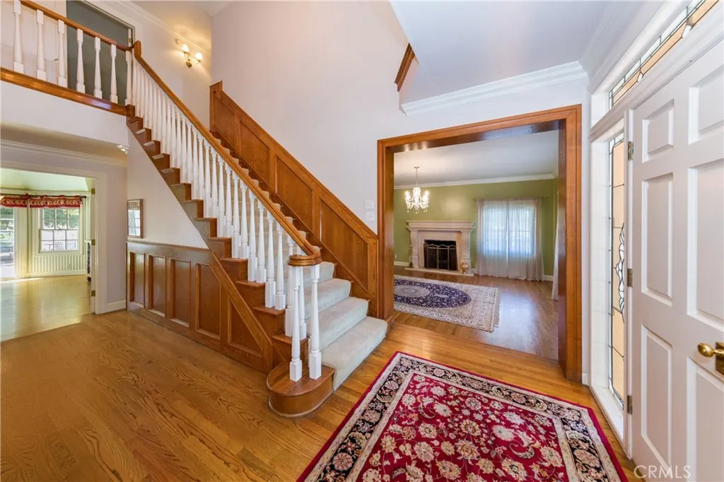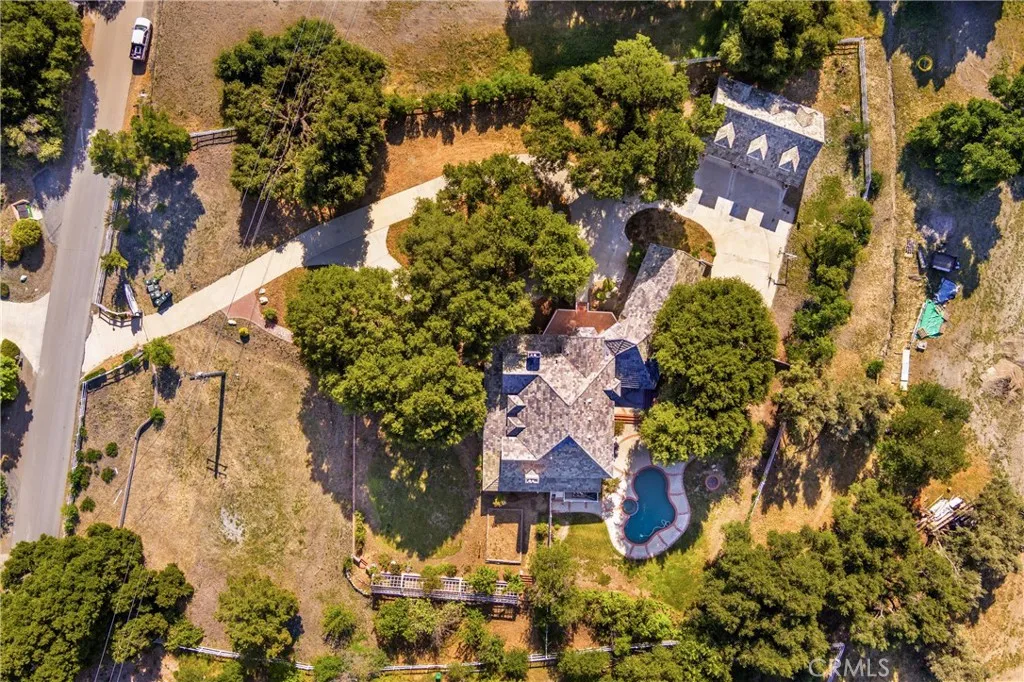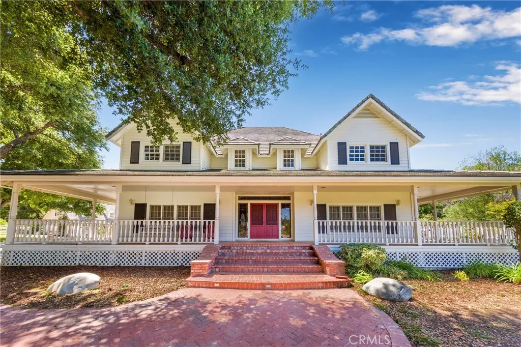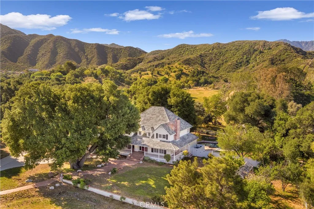 Beautiful Sand Canyon Custom gated estate home with guest house. Incredible flat land with over two acres of yard area and gorgeous Oak trees on the property. The amenities include gated main home with 5534 sq. ft. and 1299 sq. ft. guest home, a turnaround driveway, swimming pool and spa, private back patio & grass area, BBQ area, wine cellar, three car attached garage at the rear of the main house and two car garage at guest house. Peaceful front yard area with sensational pergola area spanning over 60 ft. The home has a classic wrap around front porch and a great floor plan that includes five spacious bedrooms and five bathrooms in the main house, two family rooms, hardwood floors, bar/library- game room, separate guest house with kitchen, two rooms-upstairs/office, bathrooms and a large entertainment or work out fitness room area below with a two car garage. The main kitchen is equipped with a Viking range, storage/cabinet space, breakfast bar area, stone counters and opens to family room with ample windows making it light and bright. Huge primary bedroom with bathroom large vanity area, soaking spa tub and sitting area. Spectacular private estate home in Sand Canyon with room to entertain and enjoy!