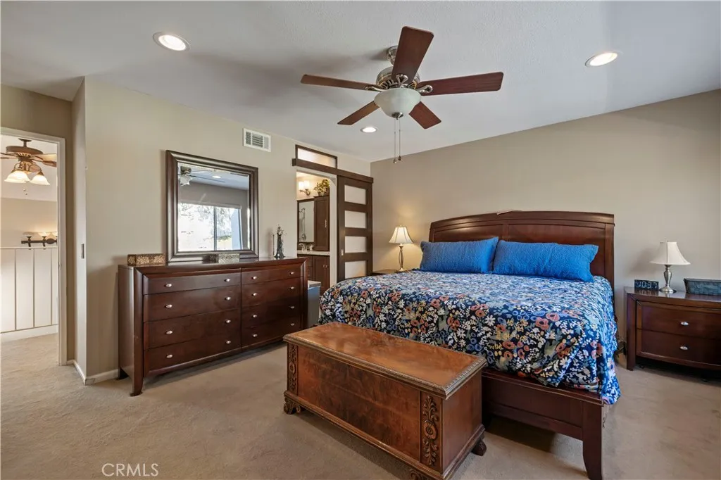 This nicely updated home offers comfort, style, and plenty of space. With three bathrooms and four spacious bedrooms, this home is designed for modern living. The beautifully updated kitchen features gorgeous wood cabinetry, elegant granite countertops, and stainless appliances-perfect for both everyday meals and entertaining. The downstairs living space showcases rich luxury vinyl plank flooring and a stunning stone fireplace creating a warm and inviting atmosphere. A full bedroom and bathroom on the main level provide flexibility for guests or multigenerational living. Upstairs, you'll find three generously sized bedrooms, including a large primary suite with a beautifully updated bathroom featuring a barn door style entrance, a walk in shower, dual sinks, and an amazing closet. Enjoy outdoor living in the private yard with a covered patio and lush landscaping-ideal for relaxing or entertaining under the California sun. Home has copper plumbing, whole house fan and new AC UNIT. FIREPLACE IS DIGITALLY ALTERED(FIRE) Per seller: HOA COVERS: Roof, fire and earthquake, front yard maintenance, trash, exterior paint and driveway. HOA Reserves are low so 10% down may be the best financing available. Buyer to investigate best financing options.