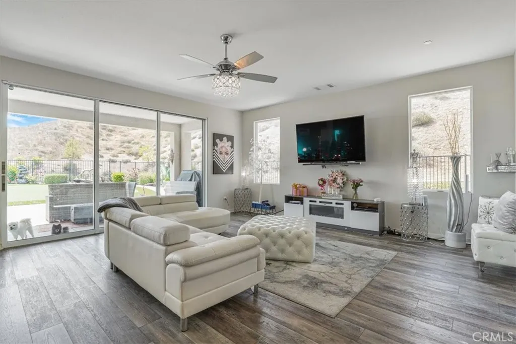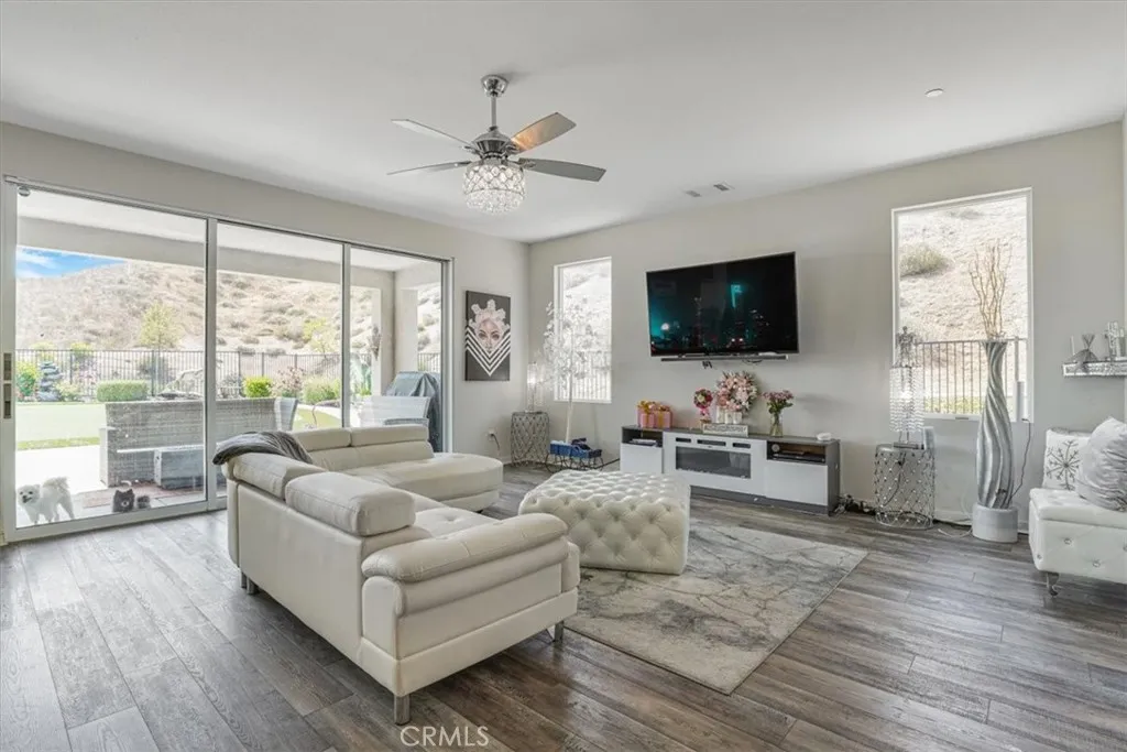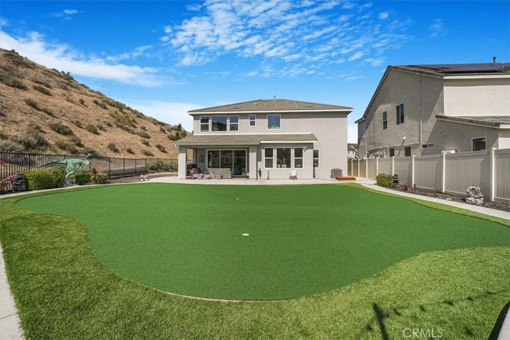 Welcome to Your Dream Home in Santa Claritas Exclusive Skyline Community! Situated on one of the largest lots in the neighborhood, at the top of the hill and at the end of a quiet cul-de-sac; this stunning 5-bedroom, 3-bathroom contemporary home offers a rare blend of luxury, comfort, and functionality in one of Santa Claritas most desirable communities. Step inside to discover soaring ceilings and expansive windows that fill the space with natural light and showcase breathtaking canyon and mountain views. The open concept floor plan creates a seamless flow between the chef-inspired kitchen, spacious living areas, and custom-designed electric fireplace, perfect for both relaxed family living and stylish entertaining. A full bedroom and bathroom on the main level provide ideal flexibility for guests, multi-generational living, or a home office. Theres also a bonus room currently used as a gym that could easily be converted into a sixth bedroom, office, or playroom. Upstairs, youll find four more generously sized bedrooms, all with custom closets, along with two full bathrooms. The primary suite is a true retreat, featuring panoramic views, a spa-like ensuite with a double vanity, and generous storage throughout. Dont miss the indoor open-air media room, perfect for movie nights, game days, or quiet relaxation. The real showstopper is the backyard, designed to entertain and impress! It features a 4-hole putting green with creative obstacle landscaping, a fire pit, and an elevated platform perfect for live music or DJ sets, making it a favorite hangout for both kids and adults