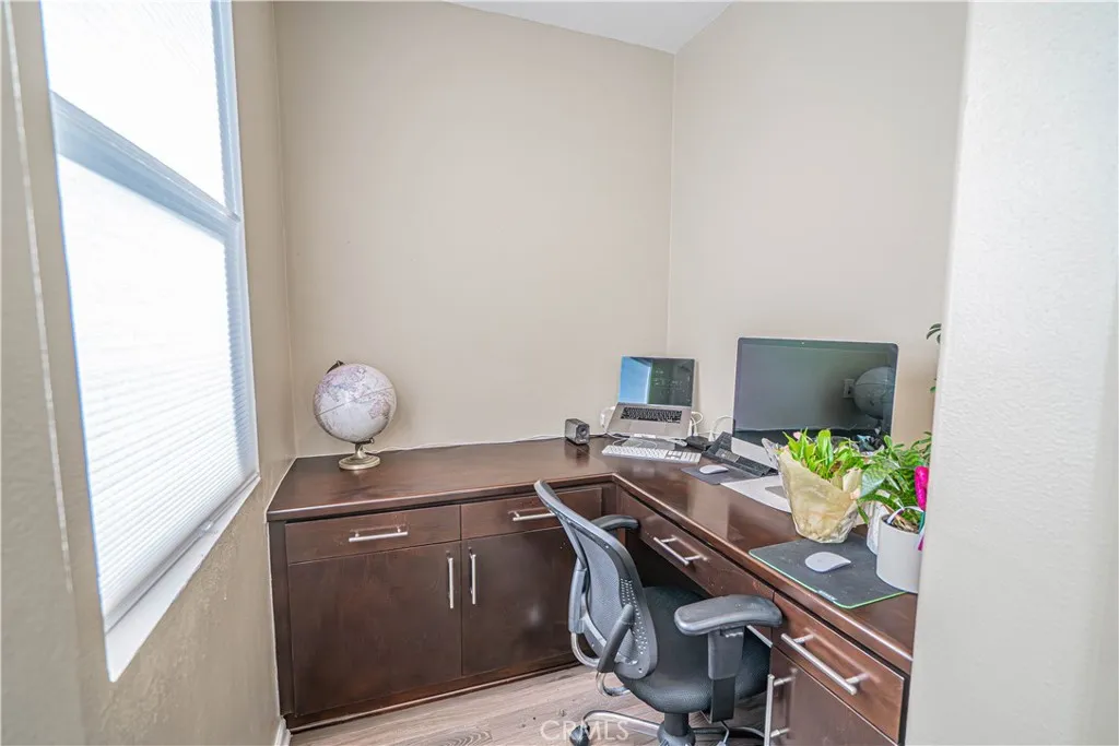 STUNNING Mediterranean-style home in the desirable Aliento Gated Community features 4 bedrooms and 3 baths. One bedroom and bathroom with a shower, downstairs is great for guests or extended family. Step into the foyer of this modern home with traditional touches, and you are greeted with a large open floor plan, wood-look laminate flooring, and high ceilings. The spacious living room has double sliding glass doors that lead out to the Arizona-style covered outdoor living space and pool-sized rear yard. A family favorite is the large gourmet kitchen that opens to the dining room and living room. The Gourmet Chefs Kitchen w/ Large Center Island has breakfast bar seating, granite counters, stainless steel sink, and pendant lighting that add the perfect touch to the large center island and dining area. There are abundant kitchen cabinets, high-end stainless-steel appliances, a custom tile backsplash, and an extended counter area. The large pantry has plenty of shelf space for storage as well as a butlers pantry for entertaining and additional storage. The home has custom cabinetry featured in the butler's pantry, kitchen, and office nook area. Just off the kitchen is an office nook with a built-in desk great for working at home. Upstairs you will find a terrific loft area (could be 5th Bedroom). The large primary suite has lots of windows for natural light and a large walk-in closet. Enjoy relaxing in the primary bath with w/quartz counters, dual vanity & separate walk-in shower that has seamless shower doors and a soaking tub. Other features recessed lighting, dual-controlled