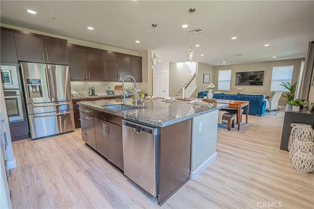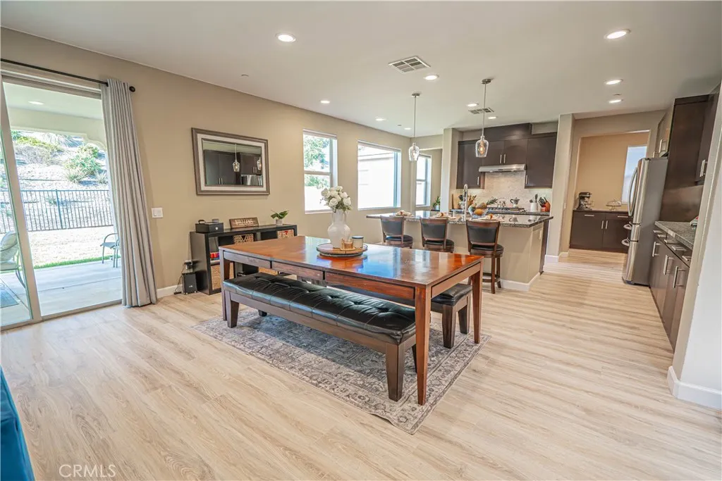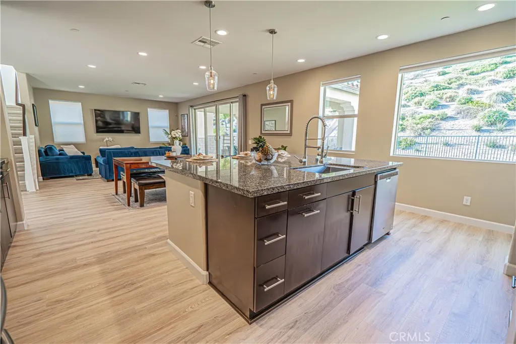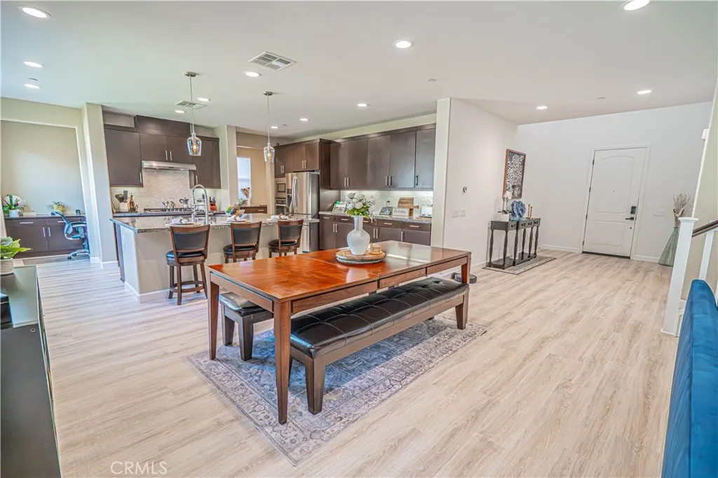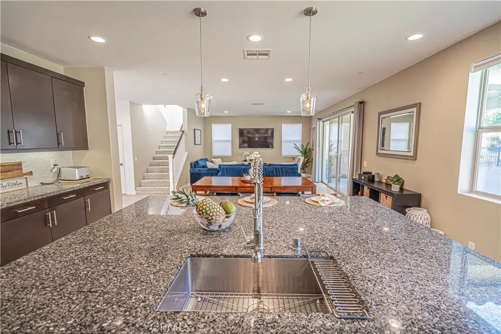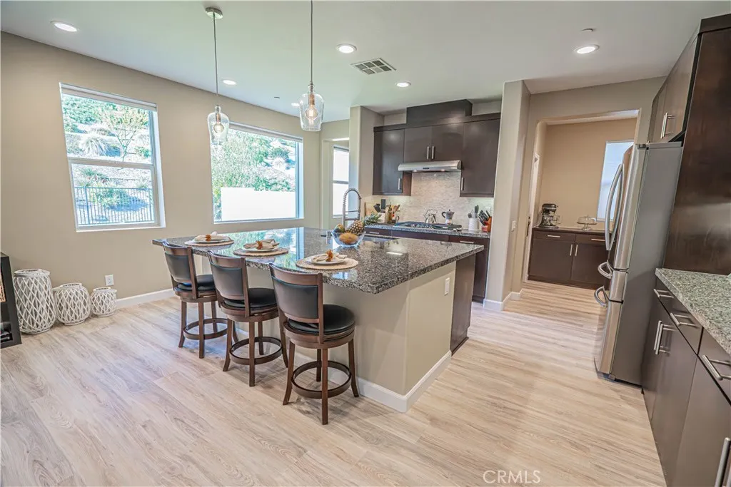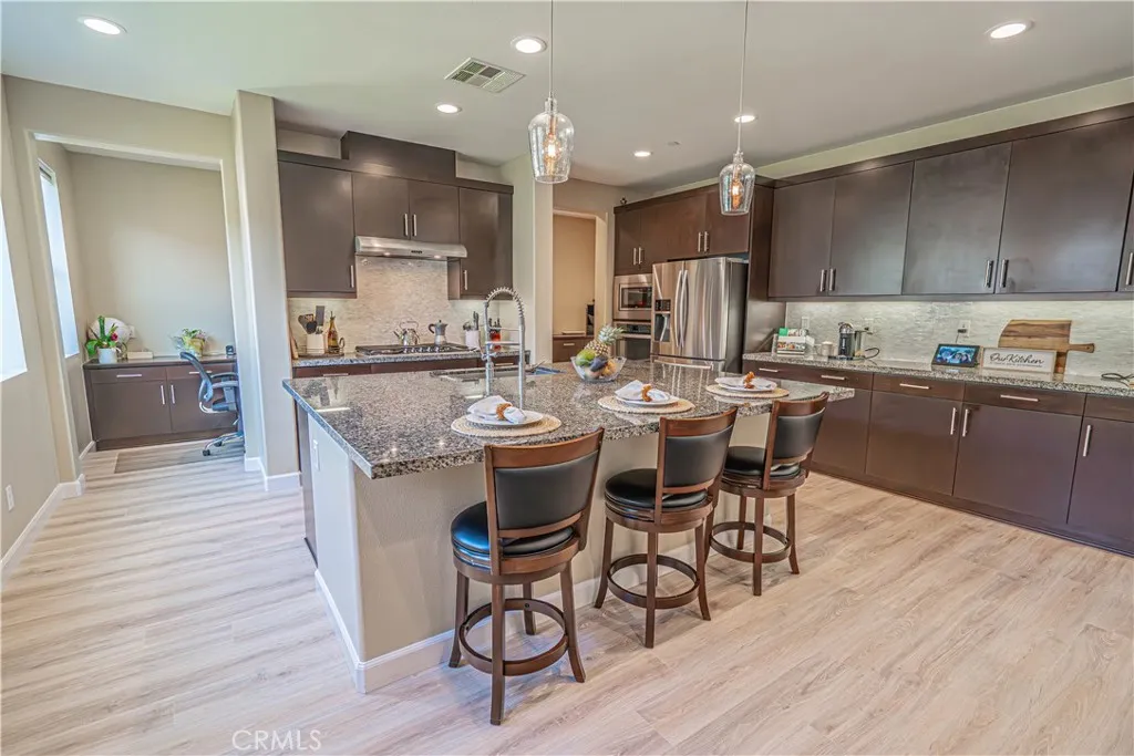 Stunning Mediterranean-Style Home in the Desirable Aliento Gated Community! Beautiful 4-bedroom, 3-bathroom home offers a perfect blend of modern amenities and traditional charm. ALL-NEW LVP FLOORING AND HIGH-PROFILE BASEBOARDS DOWNSTAIRS!! One bedroom and a full bathroom on the main floor, its ideal for guests or extended family. Step into the inviting foyer and be greeted by a spacious open floor plan, wood-look laminate flooring, and soaring ceilings. Living room features double sliding glass doors that open to a covered Arizona-style outdoor living space and a pool-sized rear yardperfect for entertaining or relaxing outdoors. The gourmet kitchen is a true centerpiece, boasting a large center island with breakfast bar seating, granite countertops, stainless steel sink, pendant lighting, abundant cabinetry, high-end stainless steel appliances, a custom tile backsplash, and an extended counter area. Large pantry and a butlers pantry provide plenty of storage and entertaining space. Just off the kitchen, an office nook with a built-in desk offers a convenient work-from-home solution. Upstairs, youll find a versatile loft area (could be a fifth bedroom), two additional bedrooms, and a spacious hallway bathroom with a double sink vanity. The luxurious primary suite is filled with natural light, features a large walk-in closet, and a spa-like bathroom with quartz countertops, dual vanity, soaking tub, and separate walk-in shower with seamless glass doors. Additional features include recessed lighting, dual-controlled central AC/heat, tankless water heater, upstairs laundry, an