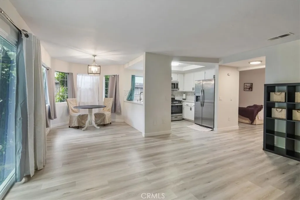 19832 Pandy Court is located on a Cul-de-Sac in Rainbow Glen in the American Beauty Classics! This modern home offers the perfect blend of style and functionality. As you enter, you will notice the laminate flooring and tall ceilings creating a bright and airy atmosphere. The living room offers a cozy fireplace and the formal dining room provides plenty of space for entertaining. The kitchen has been remodeled with quartz counters and stainless appliances and opens to the common room. Step outside the sliding glass door to enjoy the patio and backyard. All bedrooms are located upstairs, including a spacious primary suite with high ceilings and views of the backyard. Additional upgrades include newer HVAC and a full re-pipe. Community amenities include a pool, spa and sport court, all of which are a short distance. This home is a perfect fusion of modern amenities and serene living.