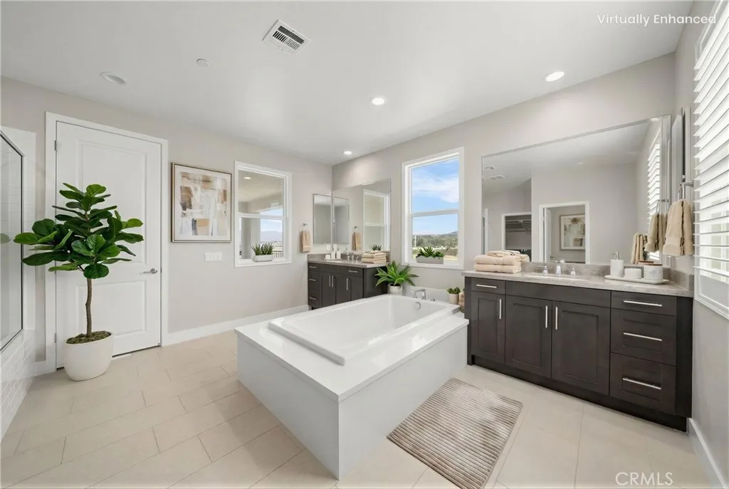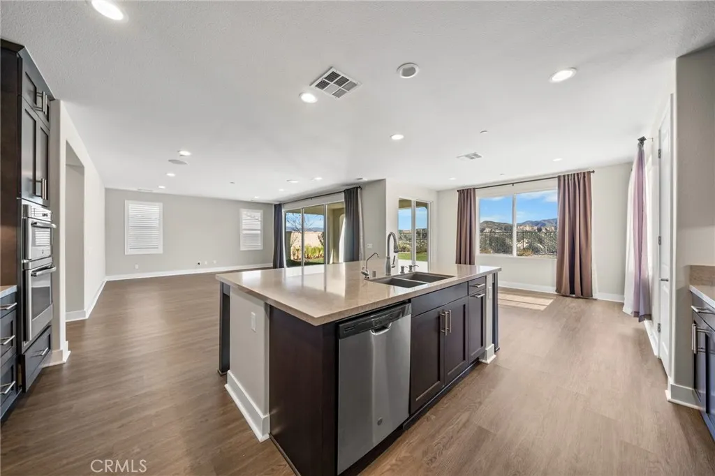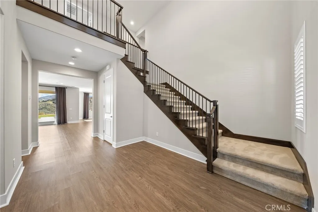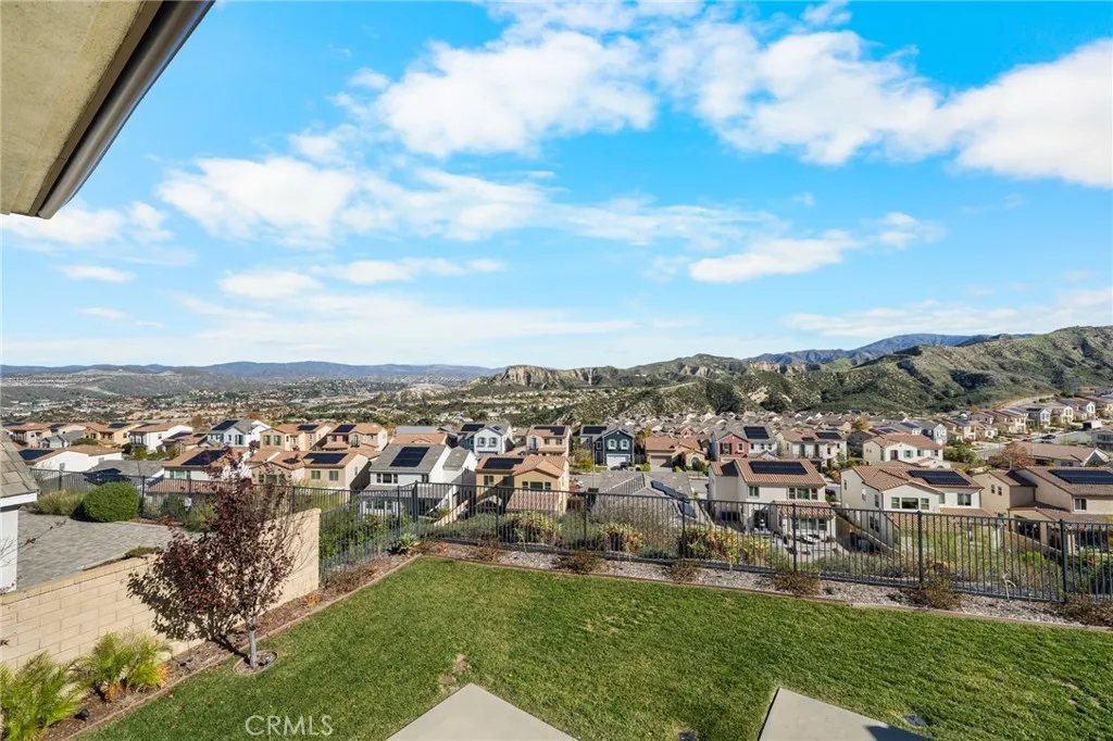 PRICE REDUCED for a Quick Sale! Breathtaking panoramic views and upgrades surpassing model home! Situated on a highly desirable premium lot. Welcome to 25110 Cherry Ridge Dr, a two-story single-family home nestled in the highly desirable Aliento gated community in Santa Clarita. Built in 2019, this modern residence offers the perfect blend of luxury, comfort, & contemporary design. One of this homes standout features is ITS PEACEFUL CITY & MOUNTAIN VIEWS, providing a serene & picturesque backdrop from both inside the home & outdoor living spaces. Whether you're enjoying your morning coffee or winding down at sunset, the views elevate the overall living experience. Boasting 4 bedrooms & 3.5 baths (one bedroom with en suite bathroom is downstairs), huge loft & office, this 3,442 sq. ft. home sits on an expansive 9,662 sq ft lot. The floor plan is open and airy with high quality finishes throughout. Upstairs, a luxurious primary suite & covered balcony offers plenty of privacy and comfort. Enjoy stunning city and mountain views from the living room, dining room & bedrooms. Modern features are a tankless water heater, fully paid solar panels, and wifi-enabled thermostats, garage door opener, front door lock, and light switches (living & dining). Interior upgrades are full-height stacked kitchen cabinets w/ stained solid wood doors and soft-close cabinet hinges; 15-foot stacked sliding doors in living room; 12-foot French doors in primary bedroom; sliding door in dining room; engineered quartz countertops, plantation shutters by Norman with rod-less design; ceiling speakers in l
