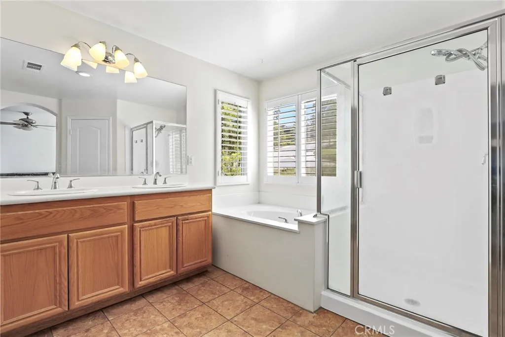 Welcome to this beautifully updated Sienna Ridge view home, perfectly located on a quiet cul-de-sac corner lot with no Mello Roos. From the moment you enter, youll notice the warm, wood-like flooring that flows throughout the home, creating a seamless and inviting living space. The open-concept floorplan features a cozy gas fireplace in the living room, which connects effortlessly to the dining area and kitchen. The kitchen offers ample cabinetry, generous counter space, and a large breakfast bar ideal for entertaining or casual family meals. Step outside from the dining area into the beautifully landscaped backyard with pavers, a peaceful fountain, and plenty of room to relax or host guests. Upstairs, the spacious primary suite offers a private retreat with a separate sitting area, dual walk-in closets, and a spa-inspired bath complete with dual vanities, a soaking tub, and a walk-in shower. The additional bedrooms each include walk-in closets and offer gorgeous views of the surrounding mountains. A versatile loft with built-in desk space makes the perfect home office or study zone. Other highlights include a guest powder room with pedestal sink on the main floor, an upstairs laundry room with storage cabinets, plantation shutters and blinds, and a direct-access two-car garage with built-in storage. The rooftop 7.2 kW Tesla solar system produces around 12,000 kWh per year. The HOA covers front yard maintenance and includes access to the community pool. With easy freeway access and a welcoming, entertainer-friendly layout, this home is truly a must-see.