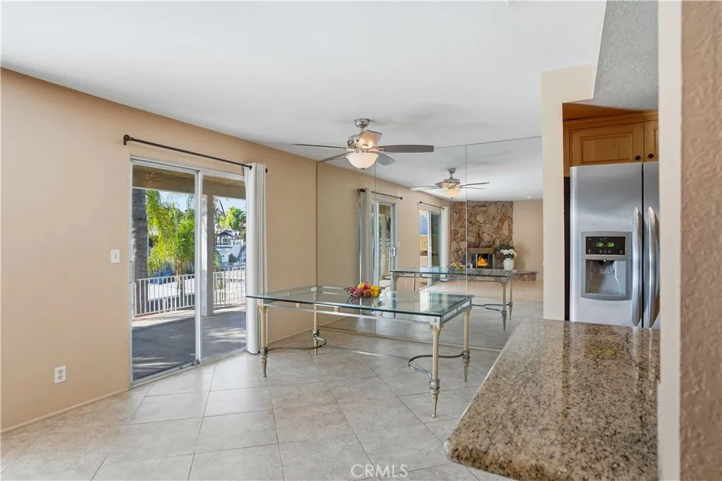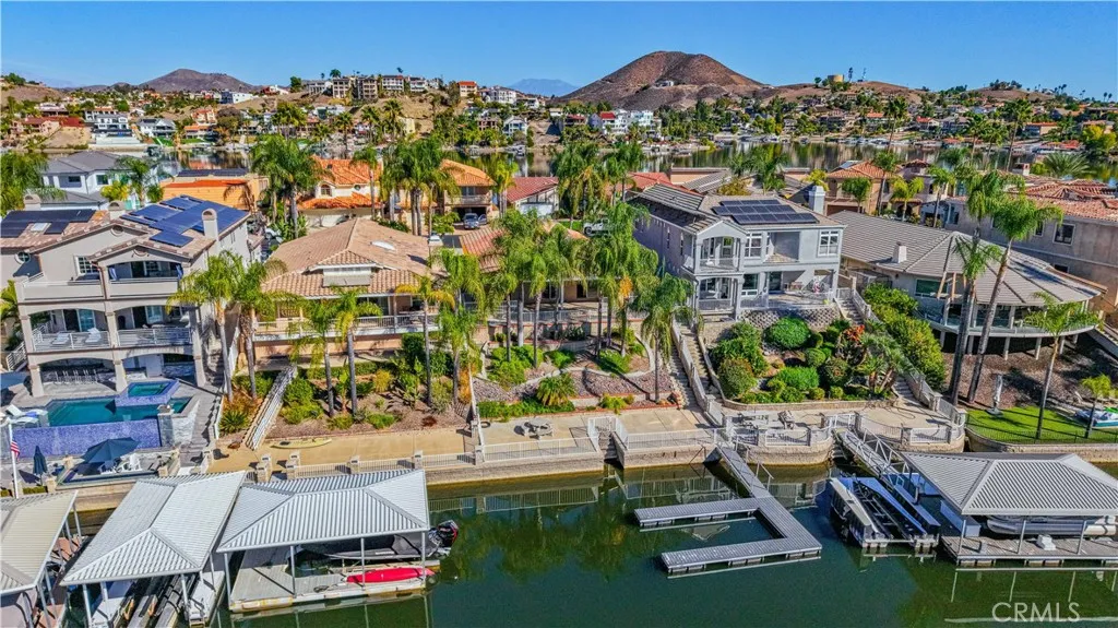 Main Lake Waterfront in the Exclusive Gated Community of Canyon Lake! Welcome to this inviting single story lakefront home featuring an expansive entertainers covered patio overlooking the water plus a large concrete deck, perfect for gatherings, sunbathing, or outdoor dining. Enjoy your newer U-Dock, ready for your boat and lake toys, just step outside and be on the lake in seconds. The home offers a comfortable and open layout with views from the spacious living area. The kitchen has tasteful upgrades like granite counter tops, an electric cooktop, stainless steel refrigerator, and warm maple cabinetry. Enjoy comfortable living with a cozy wood burning fireplace in the family room. Plantation shutters and ceiling fans thru-out the home The double door entry and tile flooring add an elegant touch. The generous sized bedrooms provide plenty of space and flexibility. The front and rear yard landscape is designed with low maintenance landscaping and palm trees, offering great curb appeal with minimal upkeep! Move in ready and full of charm. Live the resort lifestyle with boating, fishing, private beaches, clubhouse, golf, pickleball, equestrian center, and 24 hour guarded gates.
