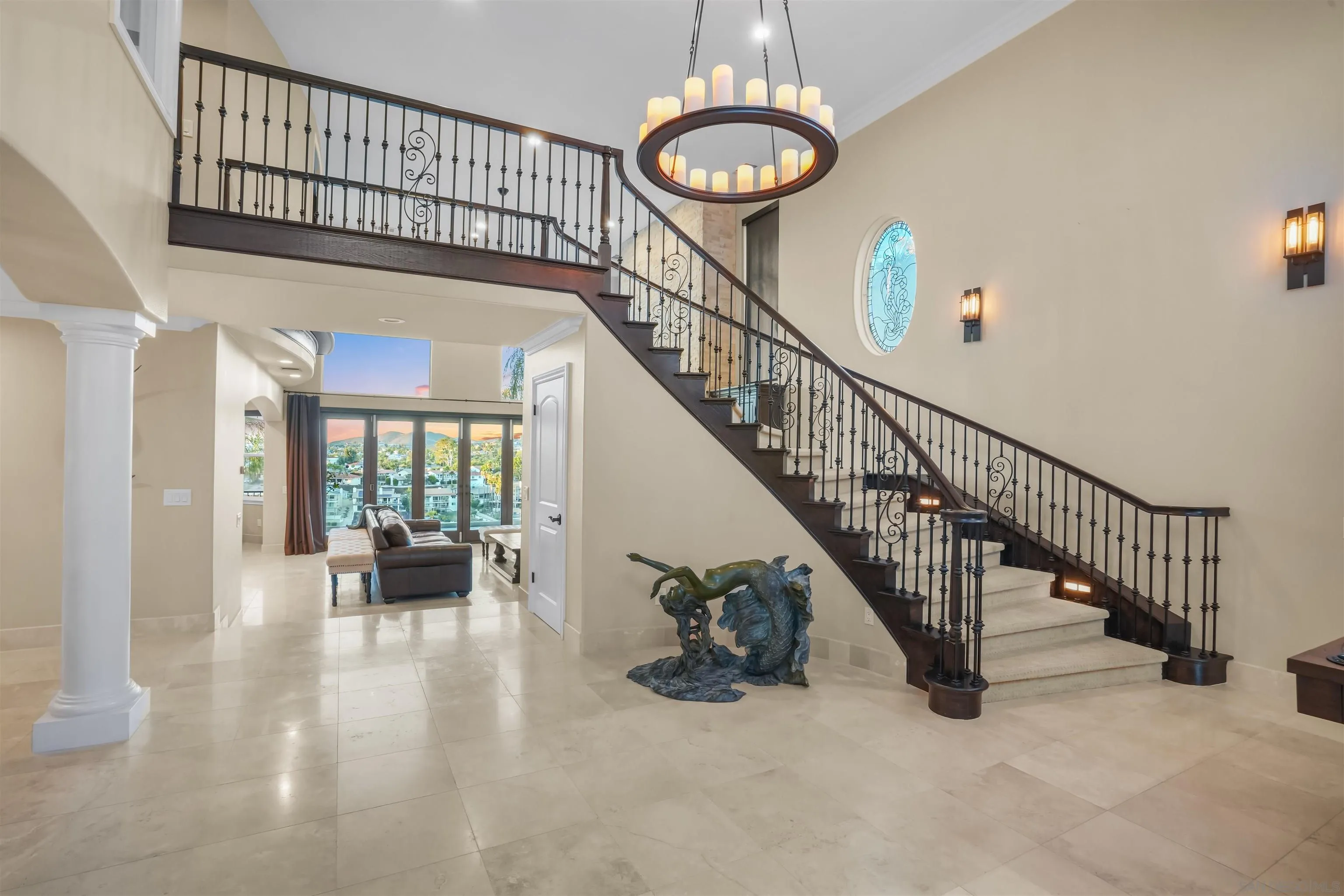 This stunning East Bay waterfront home truly has it all—impeccably maintained and thoughtfully designed to capture panoramic lake views. Step through the grand entrance and be immediately impressed by a sweeping curved wrought iron staircase and breathtaking views of the lake the moment you walk in. PAID SOLAR & BRAND NEW DOCK WITH LIFT... Enjoy seamless indoor/outdoor living with La Cantina doors that open to a spacious patio, sparkling pool (with new paid solar), and the lake just beyond—perfect for entertaining or relaxing in style. Each level features its own private deck with ceiling fans for year-round comfort. The open-concept layout includes a main-level primary suite, an executive office, and a state-of-the-art home theater that rivals any cinema. Currently configured as 3 bedrooms plus an office and theater, the home can easily convert back to a 5-bedroom layout. Step outside to your own private dock—brand new and valued at $80,000—complete with a roof and hydro lift for effortless boating. Located in the exclusive Canyon Lake community, residents enjoy private lake access for boating, fishing, wakeboarding, and waterskiing. Additional amenities include parks, beaches, a scenic 18-hole golf course, lakefront clubhouse dining, junior Olympic-sized pool, tennis and pickleball courts, lakeside camping, and year-round community events. Golf cart-friendly streets make accessing it all a breeze. Live the ultimate lakefront lifestyle—this exceptional home delivers luxury, comfort, and unforgettable views on every level.