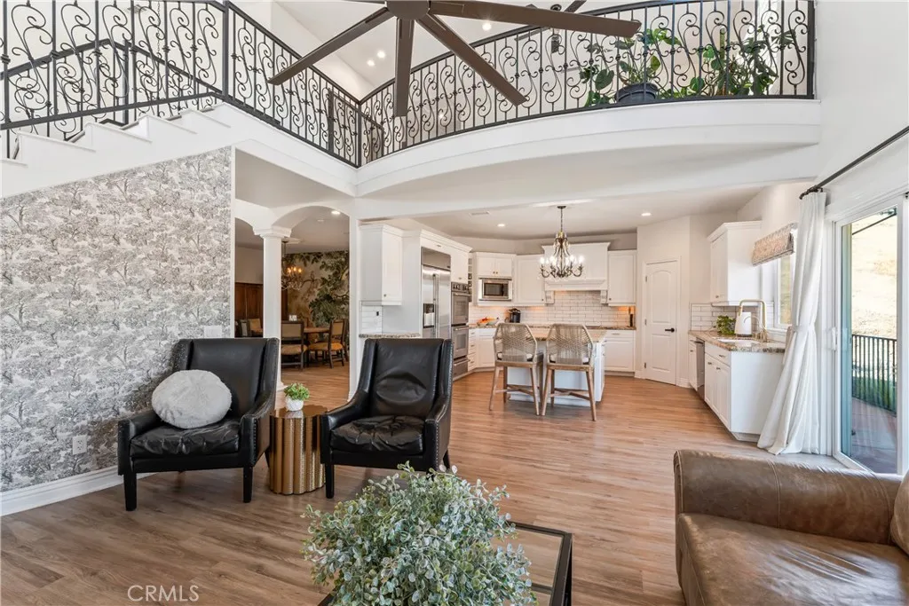Stunning Lake View on a Quiet Cul-De-Sac with Modern Comfort and Timeless Elegance. Welcome to your dream home. Built in 2005 and meticulously maintained this exquisite lake view residence in a serene cul-de-sac combines luxury, functionality, and energy efficiency. With high-end upgrades and thoughtful design, this home is perfect for modern living and entertaining. KEY FEATURES: Inviting Entryway with Grand Double front Iron doors creates a striking first impression. Gourmet Kitchen features granite countertops, a spacious pantry, built-in Jenn Air refrigerator, and double ovens for culinary enthusiasts. Elegant Dining: Formal dining room adorned with a custom mural and Roman pillars for sophistication. Stylish Interiors: Stunning Iron staircase and durable luxury vinyl plank flooring throughout for a seamless blend of beauty and practicality. Climate Control: Brand-new dual heat pump system (installed 2024) and a Quiet Cool whole-house fan for year-round comfort. Outdoor Oasis: Sweeping front patio with lake views, cozy fireplace, and a space for outdoor TV. Private backyard with wood fencing, low-maintenance turf, and an electrical hook up for a hot tub, perfect for relaxation or entertaining. First-Floor Suite: Includes a full bathroom, walk-in closet, and outdoor access, ideal for guests or multi-generational living. Additional First Floor Amenities: Separate Guest bathroom for convenience. Upstairs Retreat: Versatile loft with a pool table and a large balcony, currently enclosed as a unique Aviary. Luxurious Master Suite with walk-in closet, expansive bathroom and a