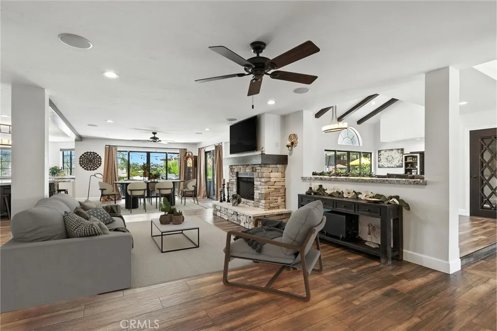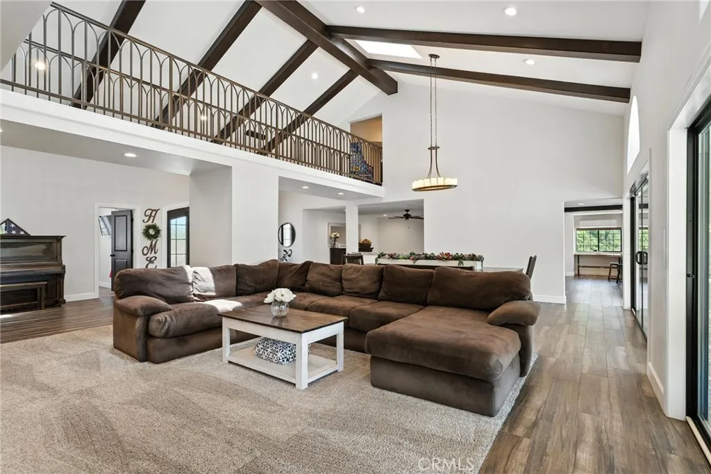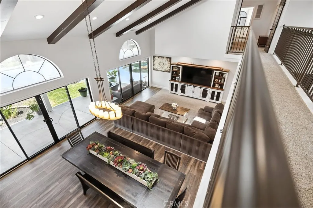 MASSIVE PRICE IMPROVEMENT! This estate offers an impressive interpretation of one-of-a-kind. Just a short walk away from the Lodge & on one of the most popular cul-de-sac's for kids to enjoy Halloween & parade festivities, this expansive home offers a sparkling pool/spa, two-story primary bedroom, 4 car tandem garage, over $300K in upgrades & 75 OWNED solar panels installed in 2022! Being an all-electric community, this home runs on energy efficiency & even has a separate propane tank for the pool/spa. Entering the stylish custom double doors, you are greeted with a view of a stunningly remodeled home with a sizeable living area open to the formal-style dining room with overhead accent beams on the vaulted ceiling as well as a second floor bridge designed for elegance & convenience when walking from your second floor primary bedroom to the upstairs loft. The tile plank floor is a show-stopper on this level & it adds to the overall spectacular feeling when entering. To the left of the main floor living room is a secondary living space complete with fireplace & open to the kitchen, casual dining nook & island. The kitchen has been completely remodeled with custom soft-close cabinets & granite countertops with an oversized island, dual-door fridge & ample windows & sliding door for a perfect view of the pool/backyard. A full bedroom & bathroom (perfect for mother-in-law quarters or guests) are on this floor along with a large laundry room. The south-wing primary bedroom is TWO STORY & the main floor offers a serene primary living room with a walk-in closet while the second flo