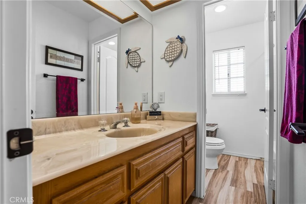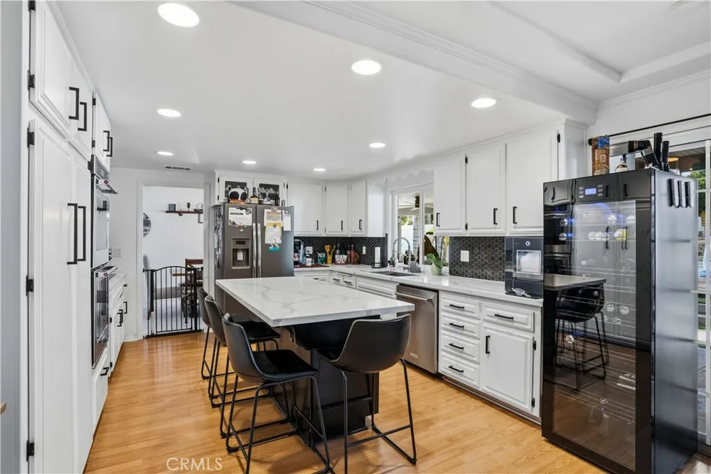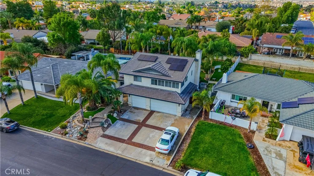 ~ Resort Living Starts at Home Canyon Lake Pool Retreat with Solar ~ Welcome to your own private escape in the recreational guard-gated community of Canyon Lake. This beautifully remodeled 4-bedroom, 3-bath home with office space offers, style, and the kind of backyard most people only experience on vacation plus 38 paid solar panels and a smaller solar system with additional panels and Tesla batteries (lease to be assumed by Buyers). The heart of the home is the gorgeous, designer kitchen featuring quartz countertops, slate black backsplash, oversized farmhouse sink, KitchenAid double oven and cooktop, and a large island that opens to the inviting family room with a wood-burning fireplace perfect for everyday living and effortless entertaining. Upstairs, the primary suite feels like a true retreat with a private balcony and a stunning remodeled bath showcasing dual vanities, a soaking tub, and an oversized walk-in shower with rain head and built-in speaker system. Step outside and its pure resort-style living tropical landscaping, citrus trees, putting green, fire pit, serene river with bridge, outdoor shower, and a sparkling in-ground vinyl pool. The brand new Alumawood patio cover spans the entire length of the home, creating the ultimate shaded gathering space, while newer vinyl fencing adds privacy and a clean, updated finish. With RV/boat parking, a 3-car epoxy-floor garage, newer roof, newer HVAC, newer water heater, Nest controls, Google doorbell, and 220V EV outlet, this home truly has it all. And beyond your front door? A 383-acre private lake, boating, beache
