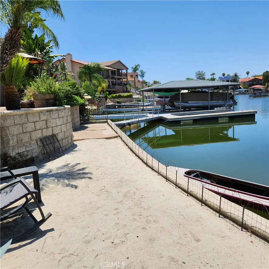 Get ready to be swept away by this breathtaking Waterfront and Resort Style Tropical Pool, Mediterranean Modern masterpiece in the exclusive gated golf and lake community of Canyon Lake! This 2-story, 3 level, 3,689 sq.ft. luxury haven is a dream come true. Step through grand double doors into a serene foyer with travertine flooring, where elegance greets you at every turn. This home is packed with wow-factor: 3 bedrooms, 3 bathrooms, an office/library with double glass French doors, custom cabinets with a rolling library ladder, a cozy sitting/loft area, and a massive bonus room that could easily be a 4th bedroom. Soaring cathedral-vaulted ceilings, a striking custom rod-iron staircase, and vibrant stained glass windows steal the show. Crown molding, plantation shutters, central vacuum, whole house water filtration system and two fireplaces elevate the vibe, while the gourmet kitchen is a chefs paradisegranite countertops, stainless steel appliances, massive double refrigerator, oven, 6-burner with grill stove, pot filler, dishwasher, and a large island with a copper sink. Custom cabinetry ties it all together. The master suite is pure indulgence: a large deck with mesmerizing water views, a dual shower, jacuzzi tub, and a sprawling custom closet. Outside, dive into the pebble tec pool and spa with a waterfalls a hidden bench seat under the falls and beach entry, or kick back on the expansive patio in a tropical oasis with a sandy beach area. Lush, professionally landscaped grounds burst with palm trees, bird of paradise, and vibrant flowering plants. Your private boat doc