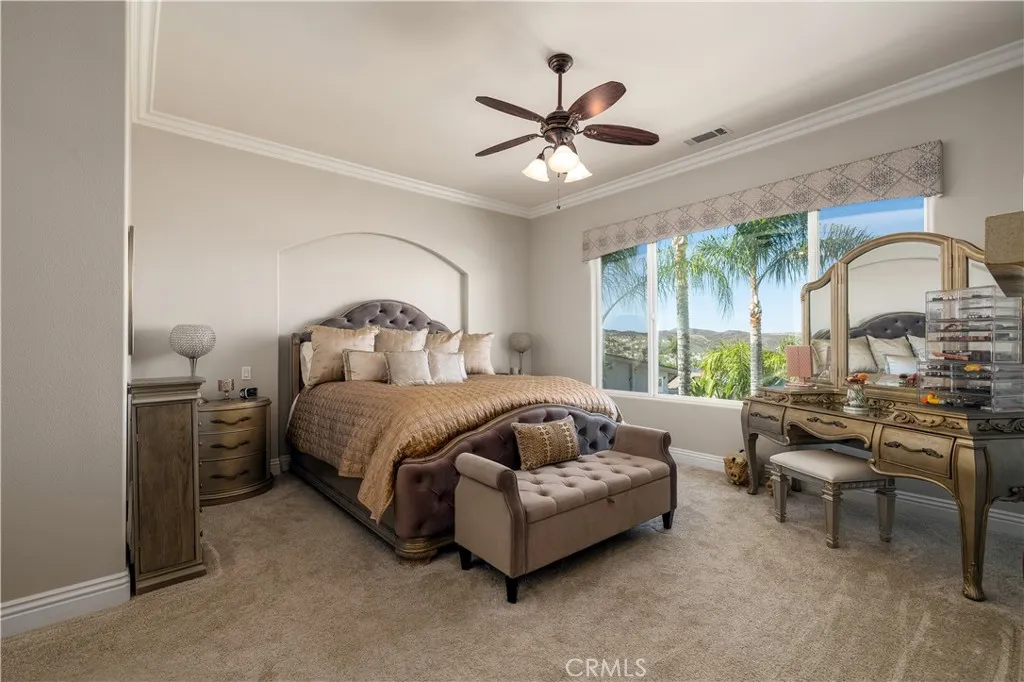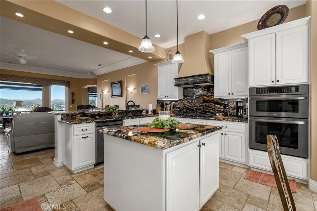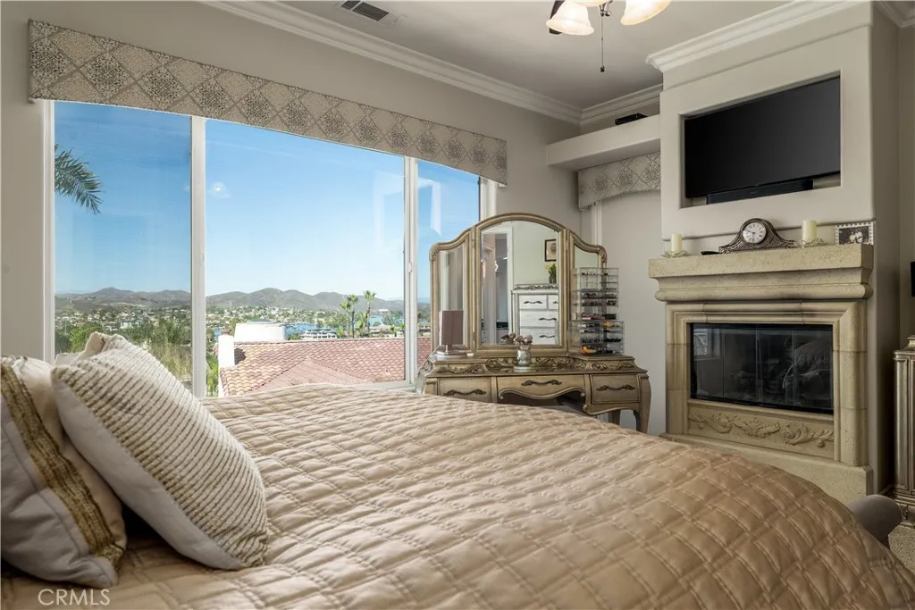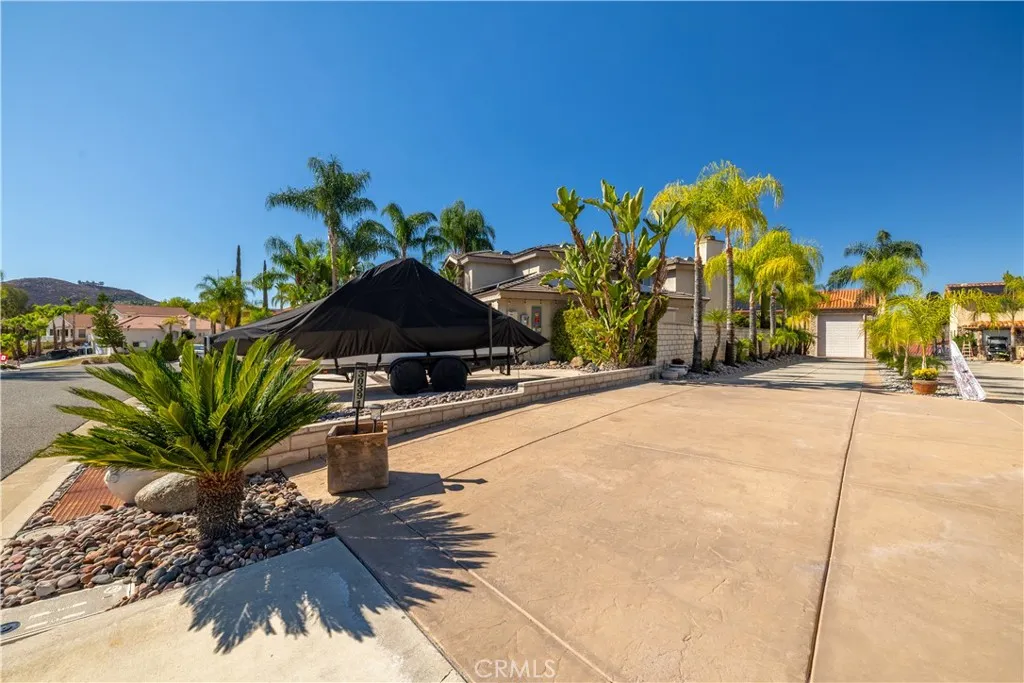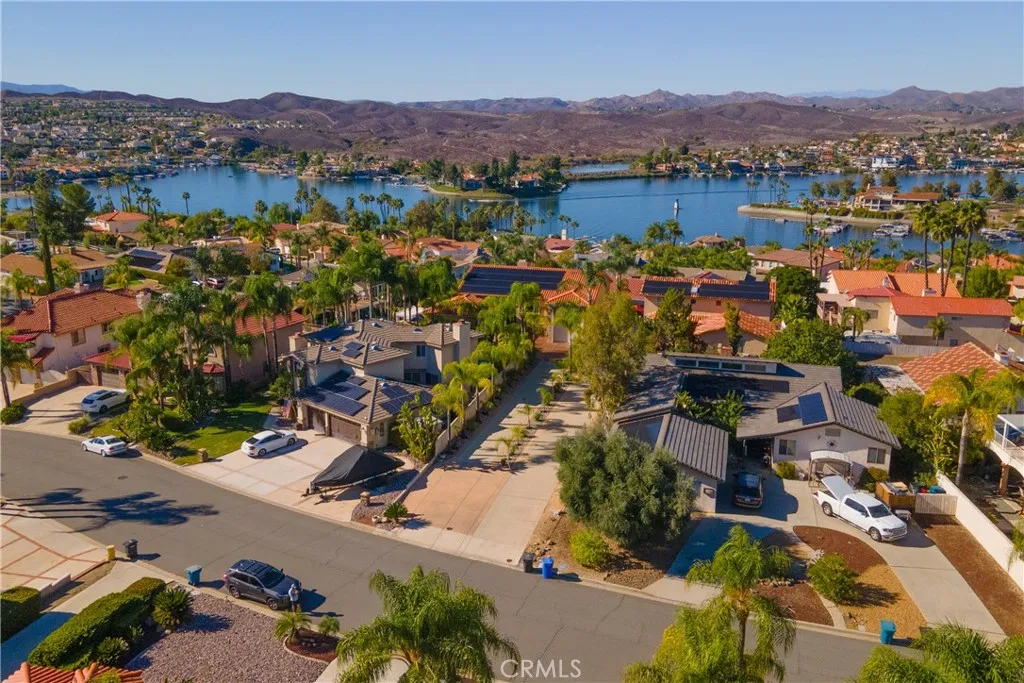This Canyon Lake house hits perfection on many levels. Breath taking Main Lake and hills views, and entertainment backyard with Pool and Spa, and a rare massive enclosed RV garage. Fully paid for solar system. This house was designed with Beauty, Comfort and Recreation in mind. Large, flat, flag lot with a Palm tree lined 182 ft driveway leads you to this hidden gem. A Stunning home that features a Great Room, Formal Dining room, 4 Bedrooms, Office, and Bonus room with wet bar. The Oversized kitchen offers Granite Countertops, Maple cabinets, Gas cooktop, Convection Oven, Stainless Steel appliances, Walk-in Pantry, and Undercabinet lighting. The breakfast bar and center Island complete the space. This home was designed around the Lake Views, which are extraordinary from the main level living areas and primary bedroom. Attention to detail is evident throughout the home and A MUST SEE to really appreciate. Entertainers backyard with a Salt-water pebble tech pool and spa. A 2-car garage with adjacent parking area and extra-large RV garage (approx 44 x 15) is expansive and can accommodate your recreational needs. Canyon Lake is a Private, Guard- Gated Community that offers an array of recreational options. For the water enthusiasts you have a 500-acre Lake for Boating, Waterskiing, Fishing, and 3 beaches for swimming. Prefer Tennis, Pickleball, baseball; that is offered as well. A Jr. Olympic Pool, 16 parks/beaches including a Dog Park, Equestrian Center and Camping make Canyon Lake, Southern Californias ideal community.