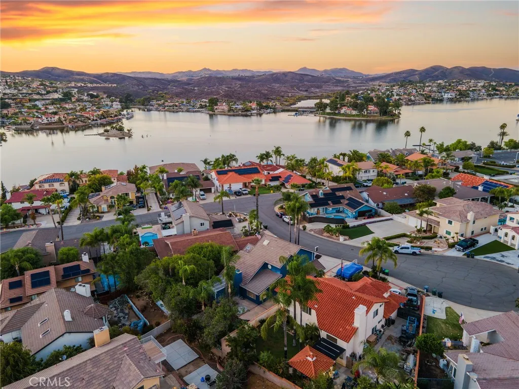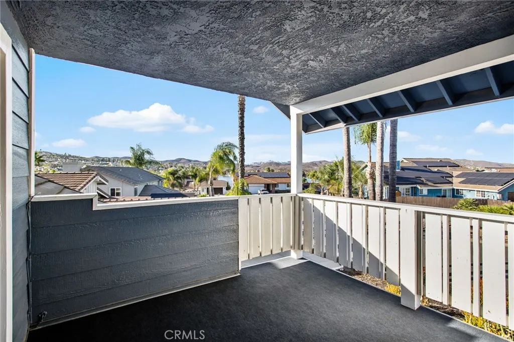 Welcome to this stunning Canyon Lake home, perfectly tucked away at the end of a peaceful cul-de-sac with beautiful lake and mountain views. Located just steps from one of the communitys largest parks, this home captures the very best of the Canyon Lake lifestyle from morning walks by the water to front-row seats for the communitys spectacular Fourth of July fireworks show. Step through the leaded glass front door into a bright, open floor plan filled with natural light and stylish upgrades throughout. The spacious living room features wood flooring, vaulted ceilings, and a cozy fireplace the perfect gathering spot for family and friends. The fully remodeled kitchen showcases sleek gray cabinetry, quartz countertops, a matching backsplash, stainless steel appliances, and a large breakfast bar that flows effortlessly into the dining area. Downstairs youll find two inviting bedrooms and an updated bathroom with a seamless glass shower and modern finishes. Upstairs, the private primary suite offers a soaking tub, dual-sink vanity, and separate shower, along with a loft and balcony where you can take in the lake views and fireworks at night. Outside, the backyard feels like your own private retreat with mature trees, a covered patio, and plenty of space to entertain or unwind. The extended concrete side yard runs from the driveway to the back perfect for parking a golf cart, small trailer, or jet ski. All of this located within Canyon Lake, a private, gated community with 24/7 security and unmatched amenities, including a 384-acre waterski/fishing lake, 20+ parks with beache