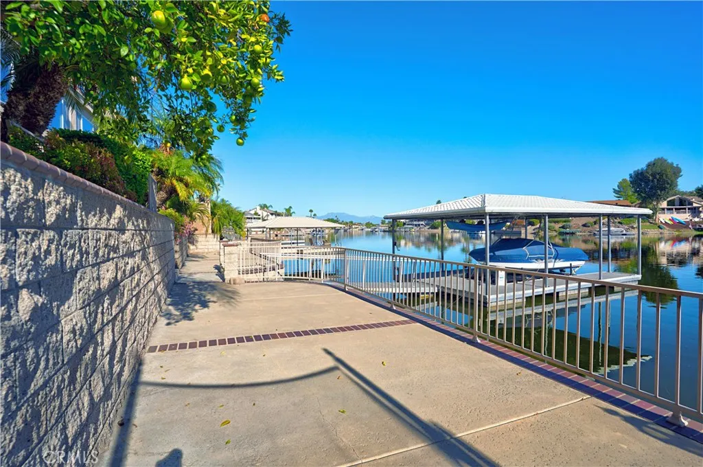 Gorgeous Lakefront Single-Story with finished guest suite in Gated Canyon Lake! Welcome to this stunning 3-bedroom, 4-bathroom lakefront home nestled in the highly desirable gated community of Canyon Lake. This beautiful single-story residence offers breathtaking lake and hill views, a private boat dock with lift, and a versatile lower levelperfect for guests or a potential ADU. Inside, youll find an open and elegant layout featuring crown molding throughout, granite countertops, and high-end KitchenAid appliances, including a five-burner cooktop, double ovens, refrigerator, microwave, dishwasher, and trash compactor. The kitchen opens seamlessly to the great room and dining area, where large sliding doors lead out to a spacious deck overlooking the lake and surrounding hillsperfect for entertaining or simply taking in the view. The primary suite offers a relaxing retreat with a tiled walk-in shower, granite vanity, and a spacious walk-in closet. Secondary bedrooms include mirrored closet doors and ceiling fans, while the finished basement provides a private guest suite with a bedroom, full bath, and additional living space. Enjoy evenings on your lakefront patio, unwind in the above-ground hot tub, or take the boat out from your private dock. Additional highlights include rain gutters and a three-car garage with an extra-deep bayideal for a boat trailer. Experience the best of lakeside living with community amenities such as boating, beaches, parks, pickleball, and golfall in one of Southern Californias most exclusive lakefront communities.