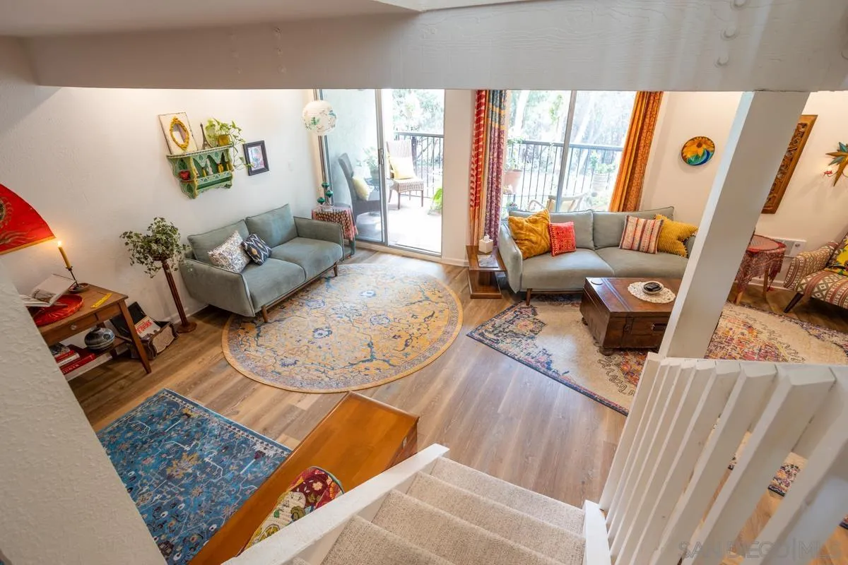 Welcome home to your La Costa Hideaway, featuring over 1,750 sq ft of tree-lined serenity. Enjoy a spacious and private tri-level retreat featuring floor-to-ceiling views of lush greenery, patios on each level, and a fully fenced yard on the ground floor. The open-concept layout is sure to impress, complemented by warm wood cabinetry, an eat-at kitchen bar, and a flexible space perfect for a pantry or craft room. The home also boasts recessed lighting and luxurious plank floors throughout. This blend of indoor/outdoor living with a boho 70’s charm and thoughtful modern updates throughout make this the place to call home. Not to mention it is quiet and inviting—your own hidden retreat in the heart of La Costa.