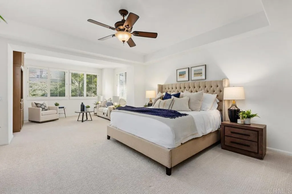 Welcome to thisspacious two-story home located in the highly desirable Encantada Community next to Aviara! Property offers 5 bedrooms, 4 bathrooms, a 3-car tandem garage, and a very low HOA! This expansive residence combines comfort, functionality, endless potential, ample storage, and excellent curb appeal.Step inside to vaulted ceilings and abundant windows that fill the home with natural light, enhanced by plantation shutters throughout the main living areas. The thoughtfully designed floor plan offers the perfect space for everyday living and entertaining. The main level features a full bedroom and bathroom, ideal for guests or multigenerational living.The open-concept kitchen seamlessly connects to the family room, complete with a cozy fireplace and built-in cabinetry. Large sliding doors lead to the backyard, which features a BBQ area, patio space, and low-maintenance landscaping.Upstairs, a versatile built-inworkstation area provides a convenient space for work or study. The second bedroom includes an en-suite bathroom, while two additional generously sized bedrooms share a Jack-and-Jill bath. The oversized primary suite is a true retreat, featuring a spacious sitting area with built-in cabinetry, a large walk-in closet, and an expansive bathroom with dual vanities, a soaking tub, and a walk-in shower.This home is ready for your personal touches to make it your dream home! Ideally located near shopping, dining, top-rated schools, and with easy freeway access. Come see this house today!